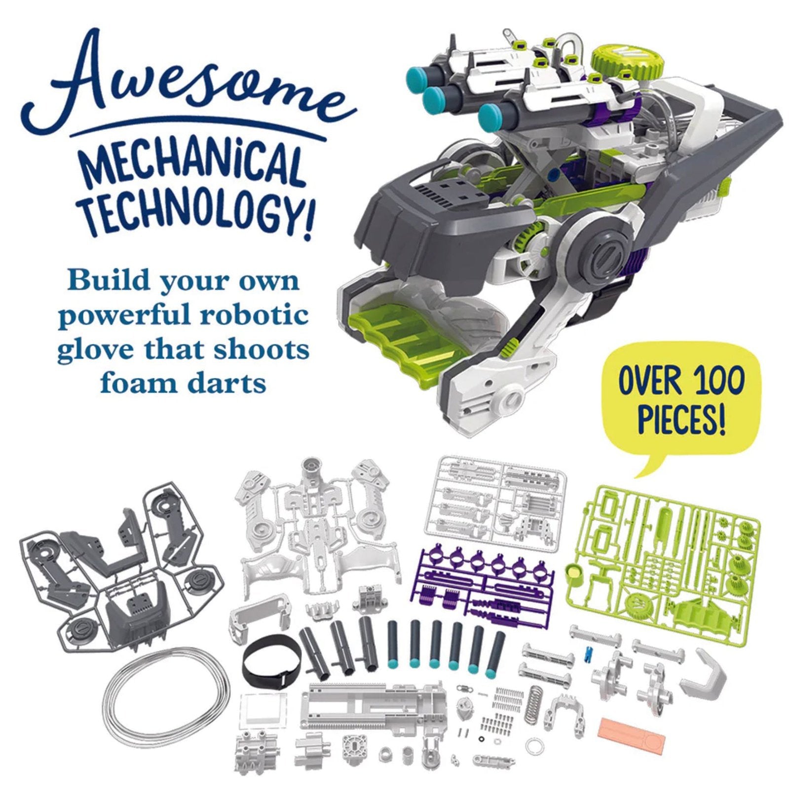 Have a blast with this awesome engineering project! Construct an air-powered robotic glove that launches safe foam darts. Learn about pneumatics — technologies that use pressurized air to perform work — and many cool mechanisms as you assemble the blaster from over 100 pieces.