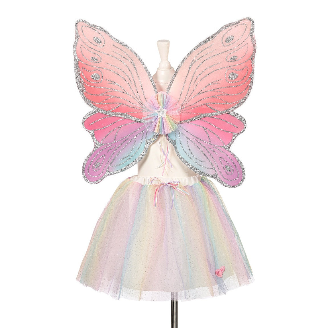 The Souza wings are in the colors of the rainbow with nice silver glitter. In the middle of the wings there is tulle and a star with silver glitter. The wings have elastic, soft straps, which the kid must wear around the shoulders.