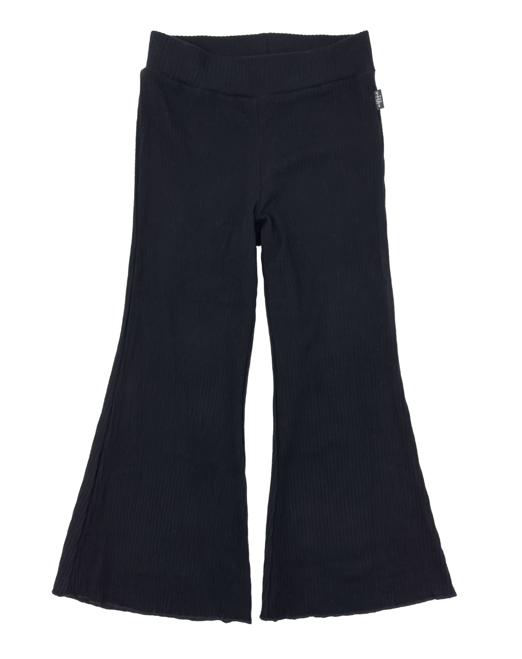 These Meadow Bell Bottoms in classic black are the perfect mix of cozy and cool—your kid will want to wear them everywhere! Designed with a slim fit through the hips and a fun flare at the hem, they’re made from soft rib knit fabric (95% viscose, 5% elastane) for all-day comfort. Plus, the playful lettuce edge hem and signature Icon Label add a cute finishing touch. Easy to slip on and ready for any adventure!