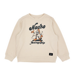 Our Feather 4 Arrow Nacho Hacci Pullover in Stone is a cozy fall essential your kids will love. Made from super soft, brushed knit fabric, it features a fun screen-printed Nacho Average Chip graphic. With its relaxed fit and stretchy Hacci blend, this pullover offers comfy, easygoing style perfect for playtime or chill days. Available in sizes from 6-12 months up to 6-7 years, it’s the go-to for effortless cool and comfort all season long.
