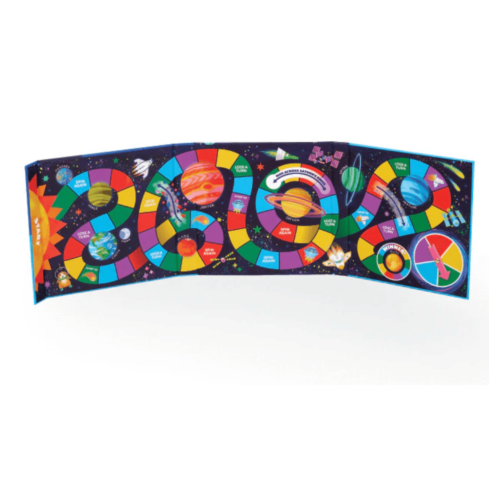 Hit the road and have a blast with this Magnetic Space Game! Featuring a foldable magnetic game board and 6 magnetic game pieces, this game is perfect for quick rounds. With a built-in spinner and straightforward instructions, it's a breeze for everyone to have some lighthearted fun. Plus, each round only takes 10 minutes, so you can keep the fun going!
