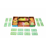 - PLENTY OF PIECES: This game includes a box with a lid, a Racoon figurine, yummy pastry pieces, play money, baskets and 3 dice