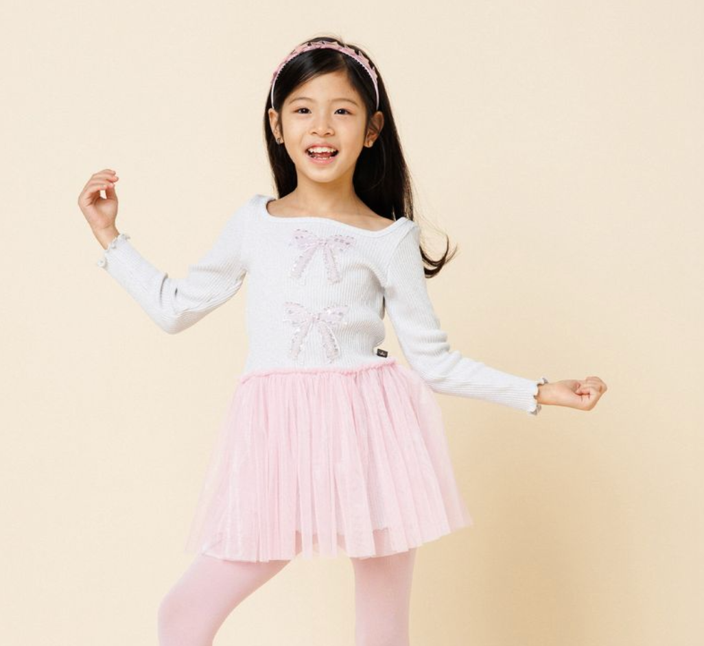 Petite Hailey Opal Bow Tutu Dress (Pink)
