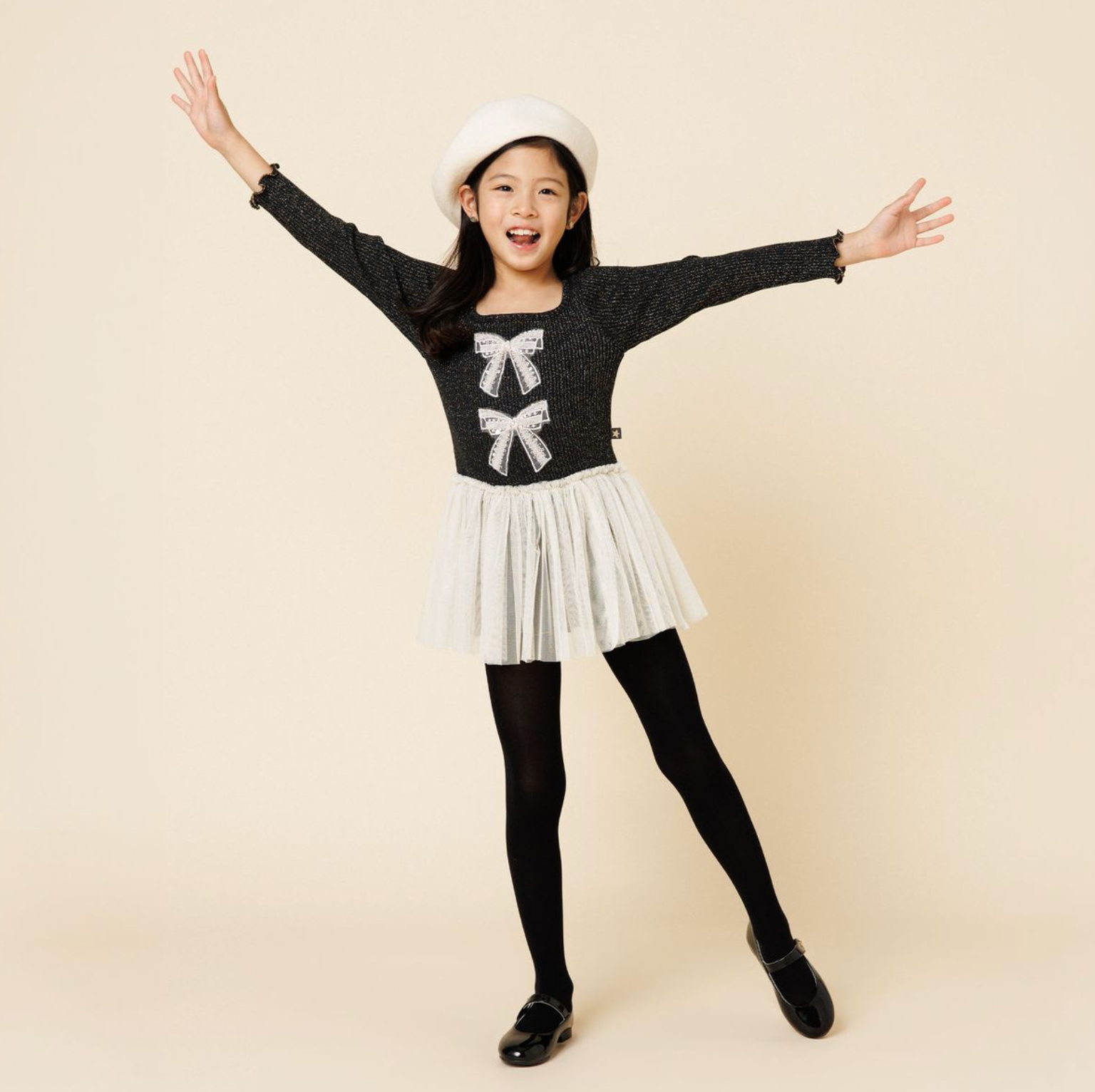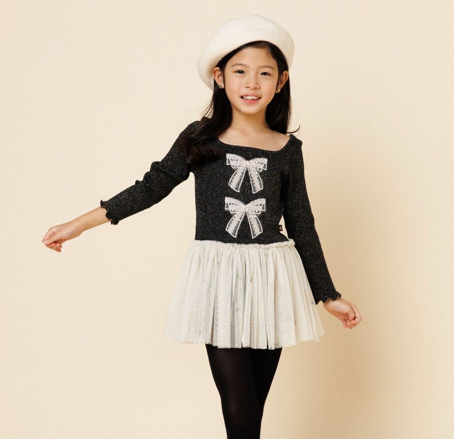 Sparkle with every twirl. Our Glitter Bows Dress is a dazzling blend of comfort and charm, designed for little girls who love to shine. Featuring a soft ribbed top adorned with jeweled bows and a layered tulle skirt, this dress is equal parts playful and polished. Available in silver, pink, and black, it’s perfect for birthdays, celebrations, or making everyday moments feel magical.