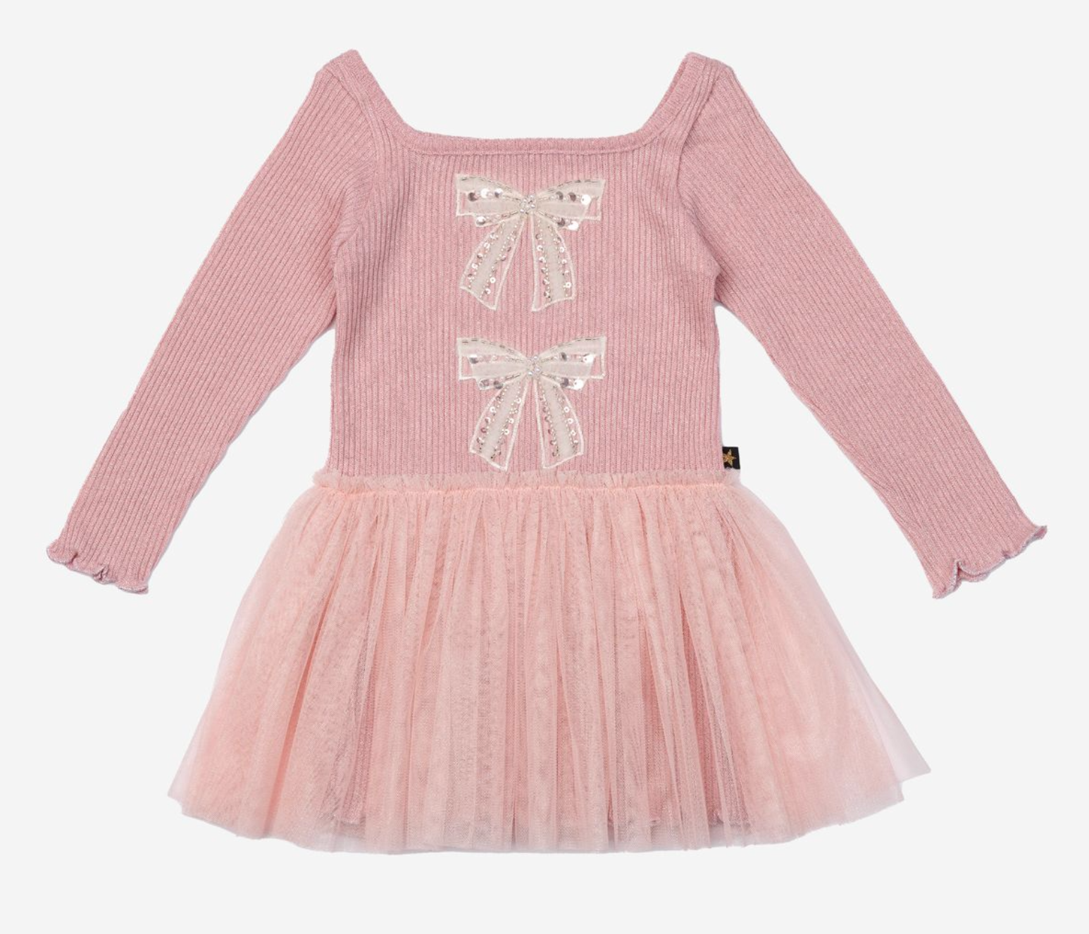 Sparkle with every twirl. Our Glitter Bows Dress is a dazzling blend of comfort and charm, designed for little girls who love to shine. Featuring a soft ribbed top adorned with jeweled bows and a layered tulle skirt, this dress is equal parts playful and polished. Available in silver, pink, and black, it’s perfect for birthdays, celebrations, or making everyday moments feel magical.