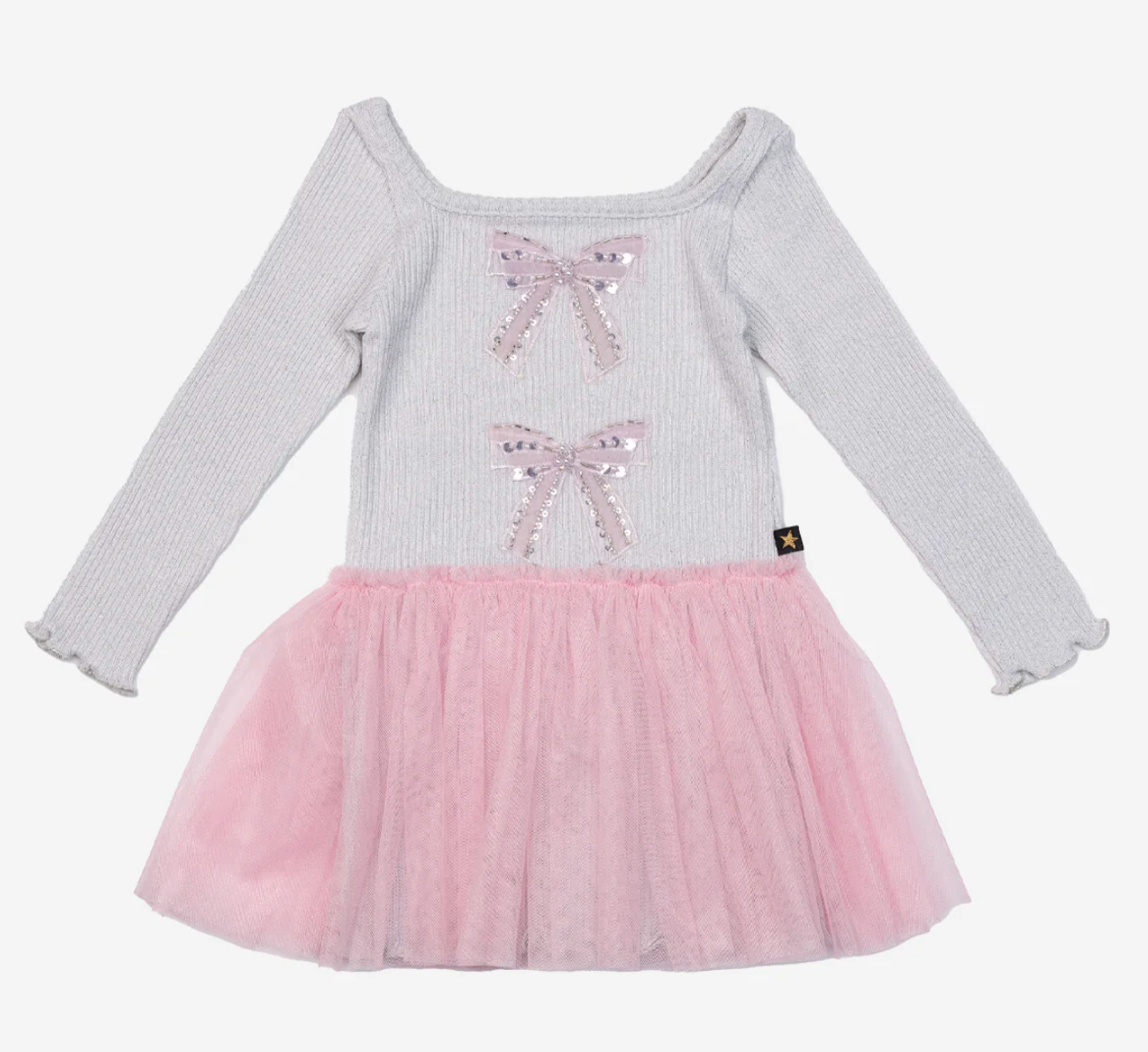 Sparkle with every twirl. Our Glitter Bows Dress is a dazzling blend of comfort and charm, designed for little girls who love to shine. Featuring a soft ribbed top adorned with jeweled bows and a layered tulle skirt, this dress is equal parts playful and polished. Available in silver, pink, and black, it’s perfect for birthdays, celebrations, or making everyday moments feel magical.