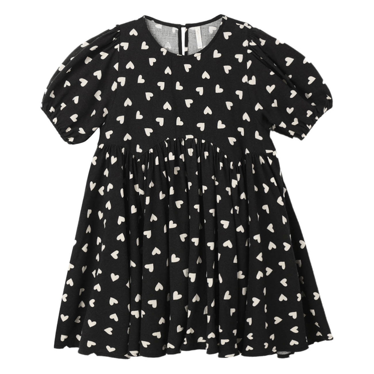 The Rylee & Cru Rose Dress features charming gathered puff sleeves alongside a scalloped waist seam that brings a playful vibe to its flattering fit. Showcasing the 'hearts' print, this cotton/poly dress is easy to care for with a simple machine wash cold and tumble dry low routine.
