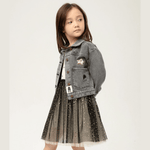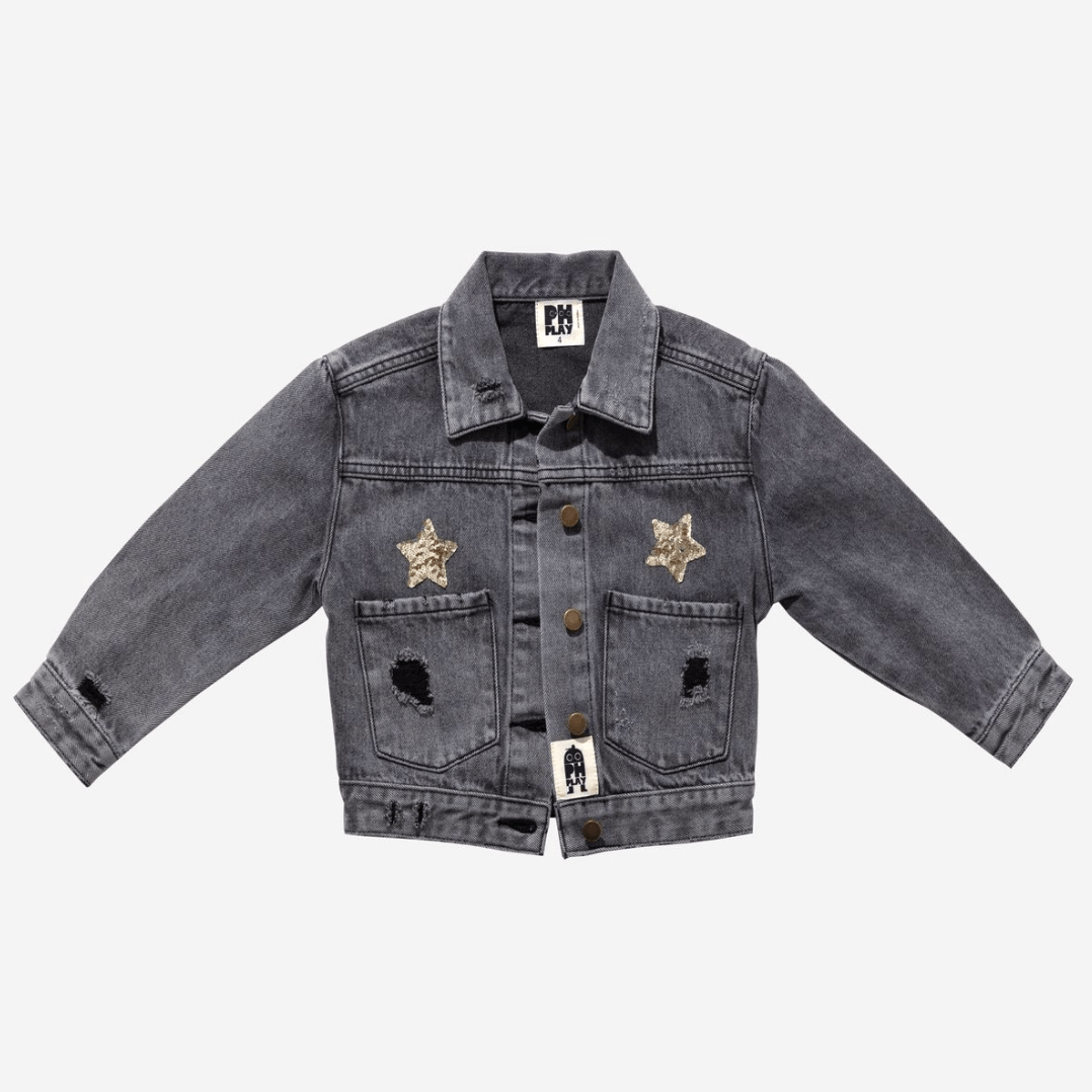 Petite Hailey Patched Black Denim Jacket (Bow)