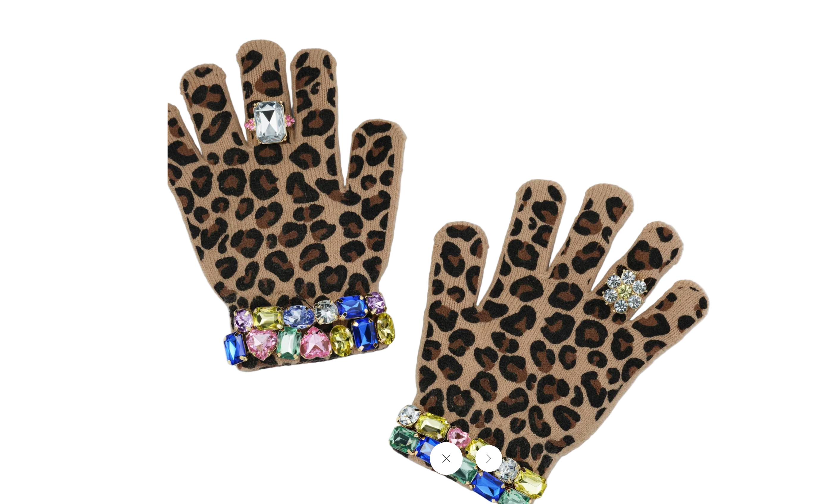 LEOPARD PRINT. LOTS OF JEWELS. SUPER COZY. Yep, our Jungle Jeweled Gloves have it all. Fancy gems that mimic the look of bracelets and rings make these winter must-haves POP and purr-fect for everyday use. Get your wild child on and head out into that winter jungle-land!