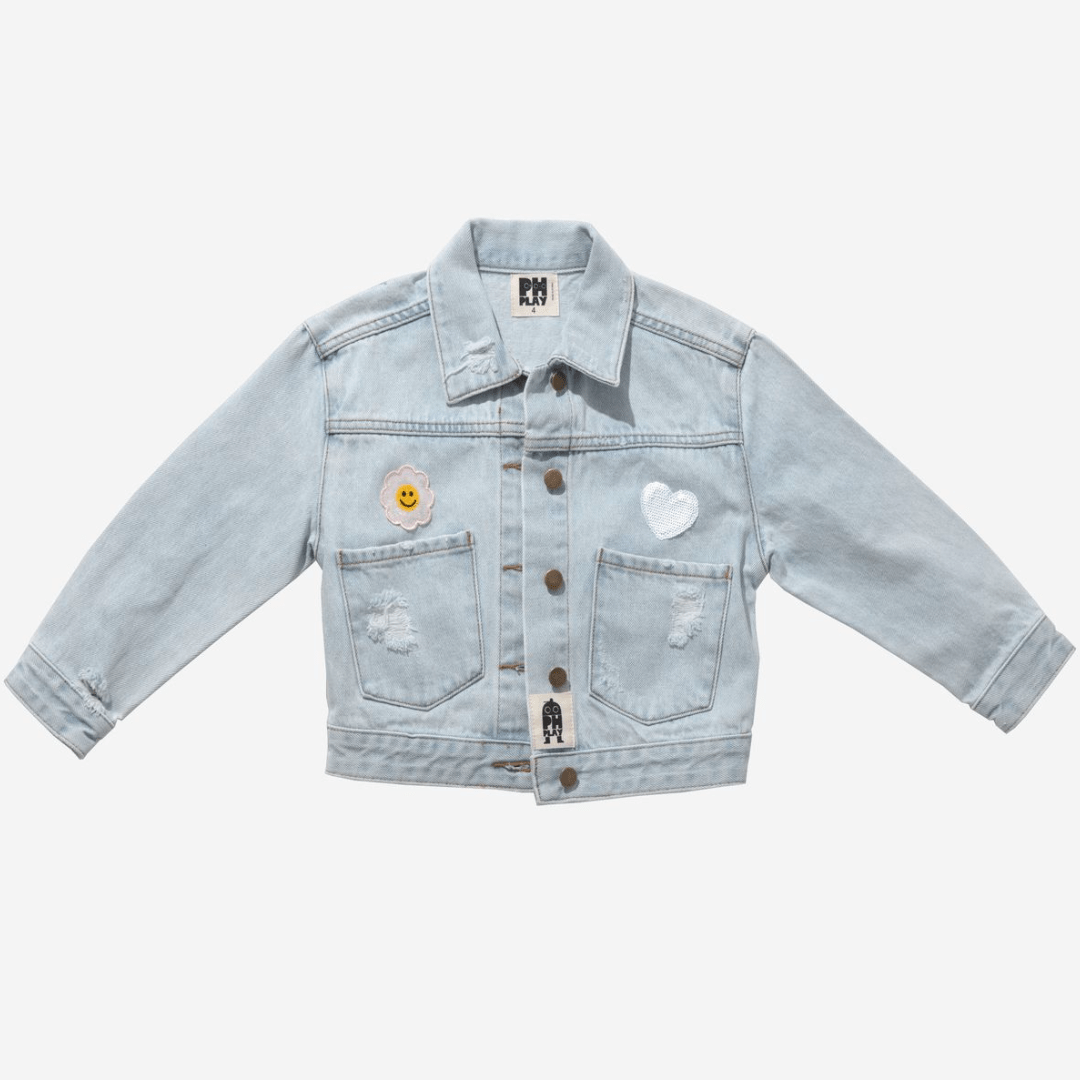Petite Hailey Patched Denim Jacket (Light Blue Daisy)
