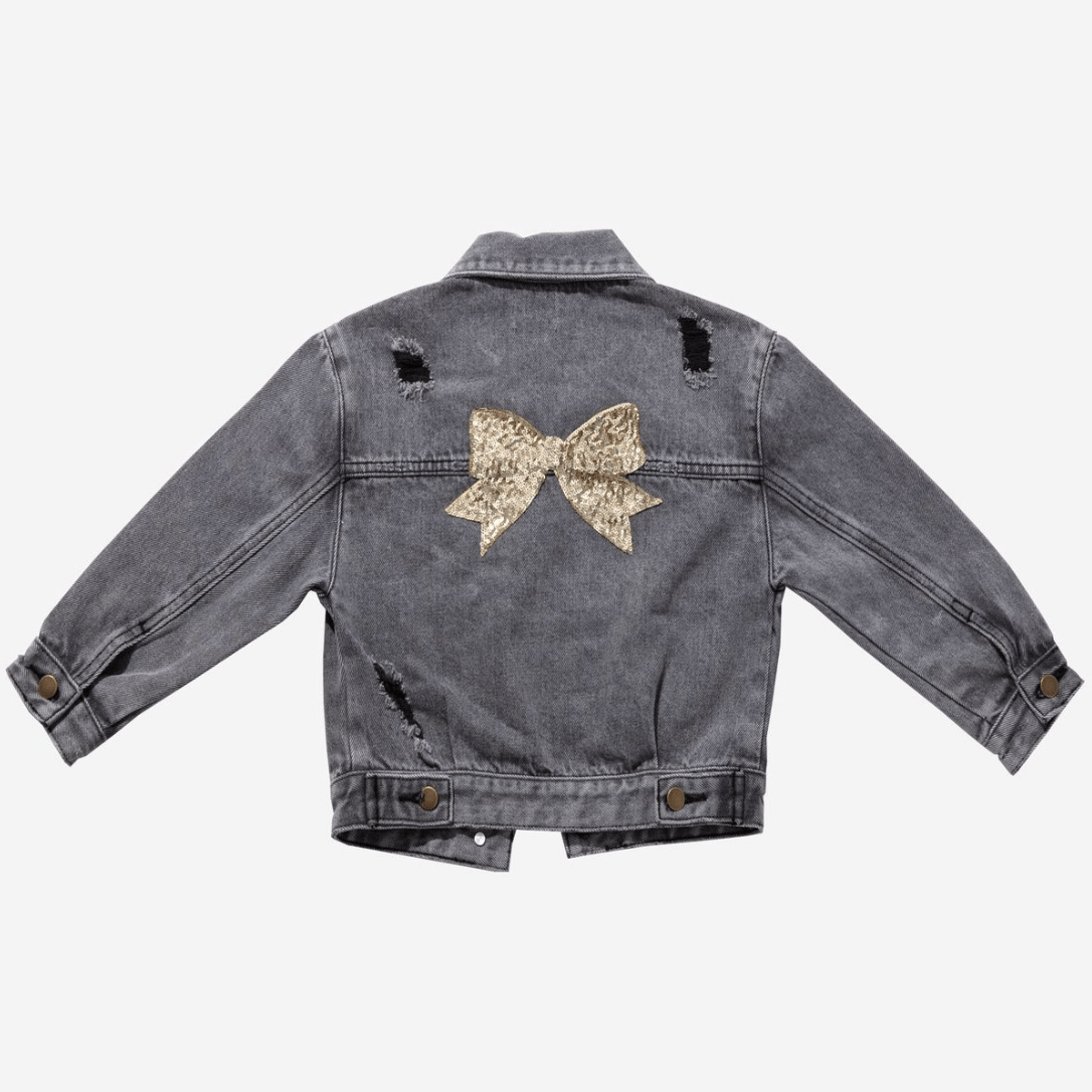 Petite Hailey Patched Black Denim Jacket (Bow)