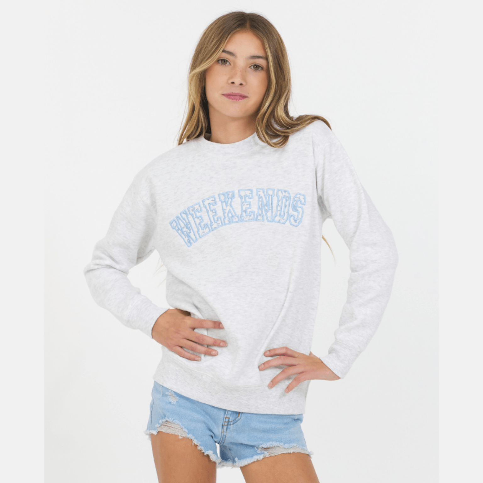 Vintage Havana Floral "Weekends" Patch Crewneck Pullover Sweatshirt