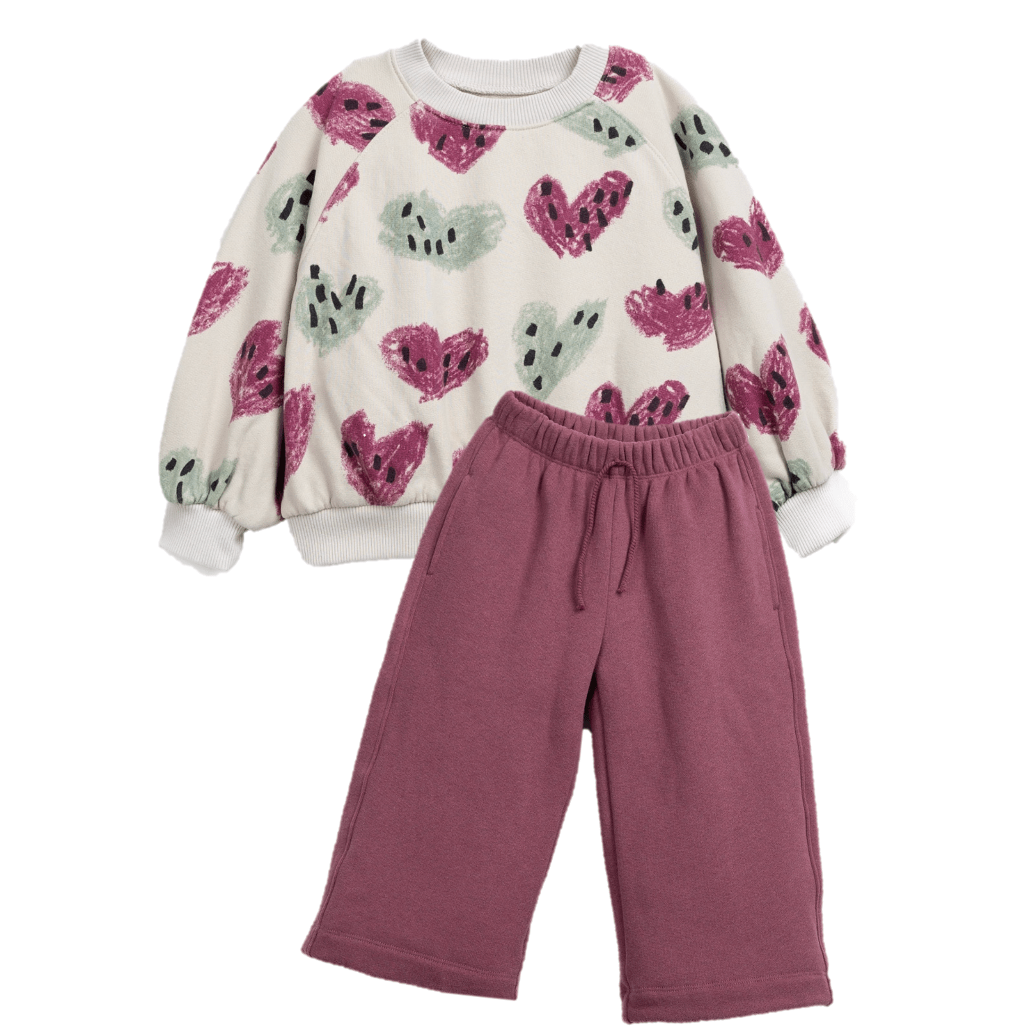 Play Up Printed Fleece Sweater and Trouser Set (Hearts)