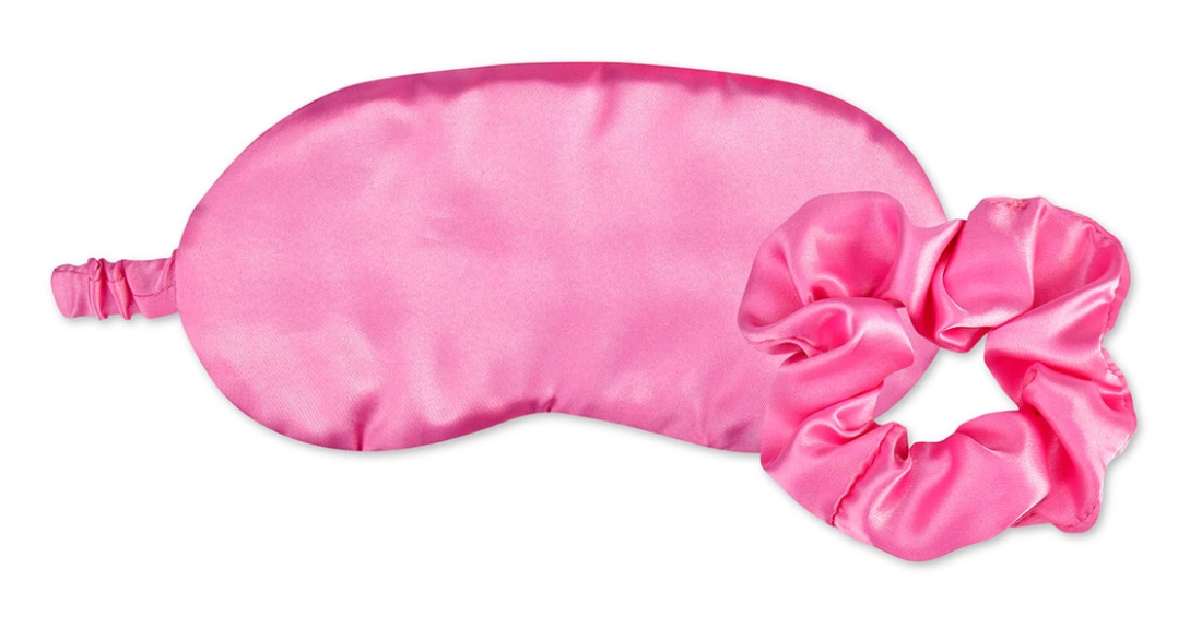Keep cozy with our satin eye mask featuring a soft satin lining and secure elastic strap. Comes with a matching satin scrunchie for extra style. Made from 100% polyester, fits all sizes, and arrives in a handy peggable box measuring 4" wide by 8 3/4" high and 3/4" deep.