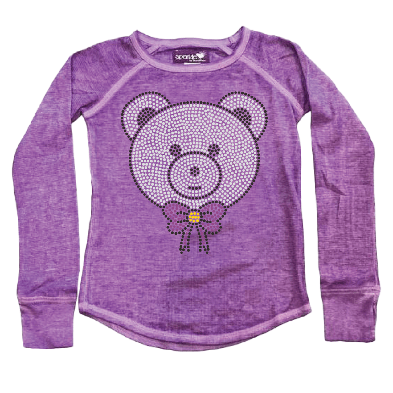 Stoopher Bear w/ Bow & Stones L/S Thermal Raglan (Purple)