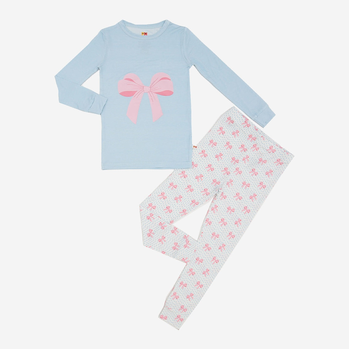 Petite Hailey Bamboo L/S Printer PJ's Set (Blue Bow)