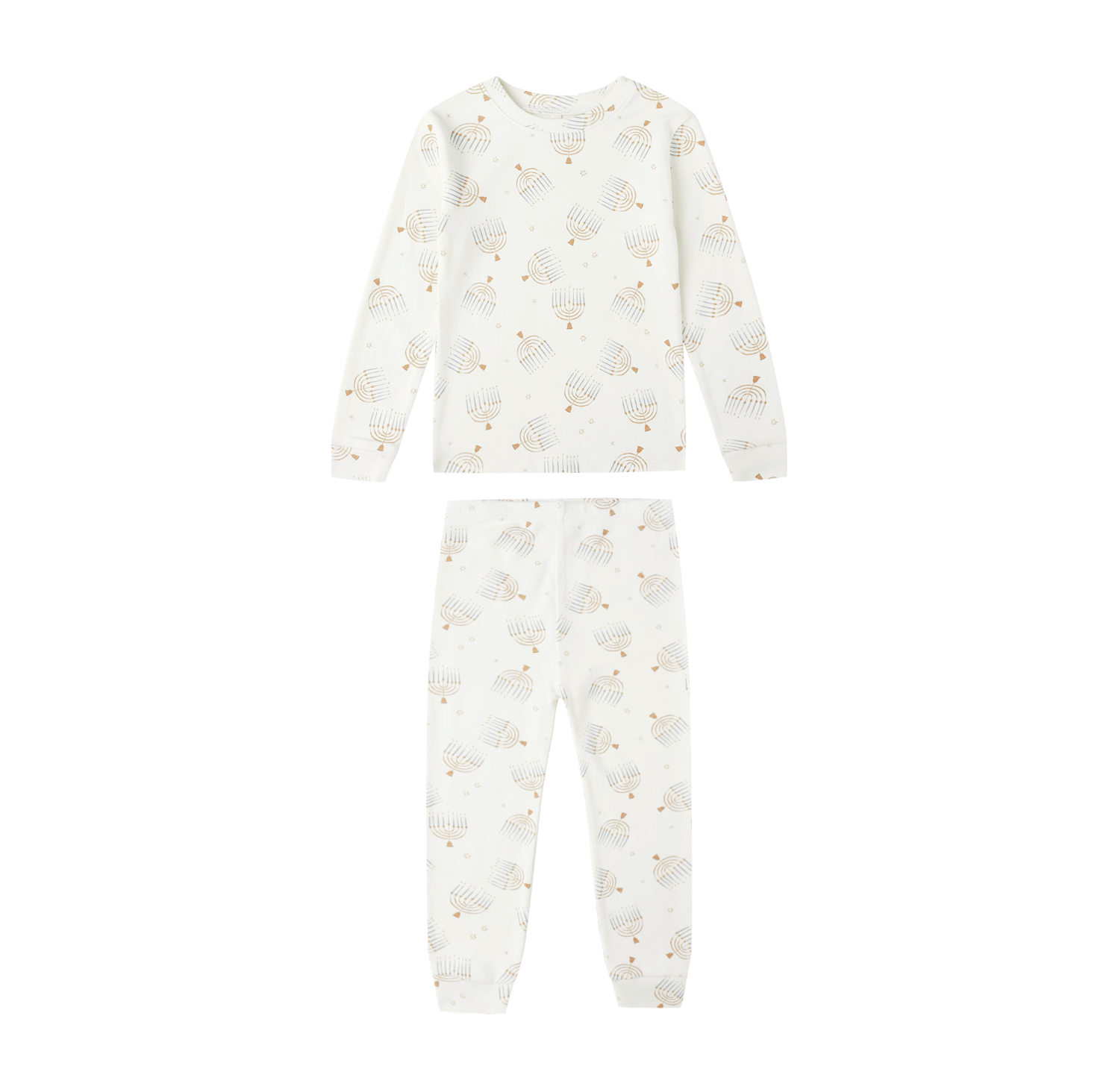 Rylee + Cru Organic Long Sleeve Pajama Set - Hanukkah (Ivory)