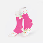 These cool socks are shaped like everyone's favorite icy treat, perfect for adding a refreshing touch to any outfit. Watch the little ones show off their love for frozen pops with every step they take. Brain Free! Unisex - Fits ages 5-10 years old- Size 28-35.