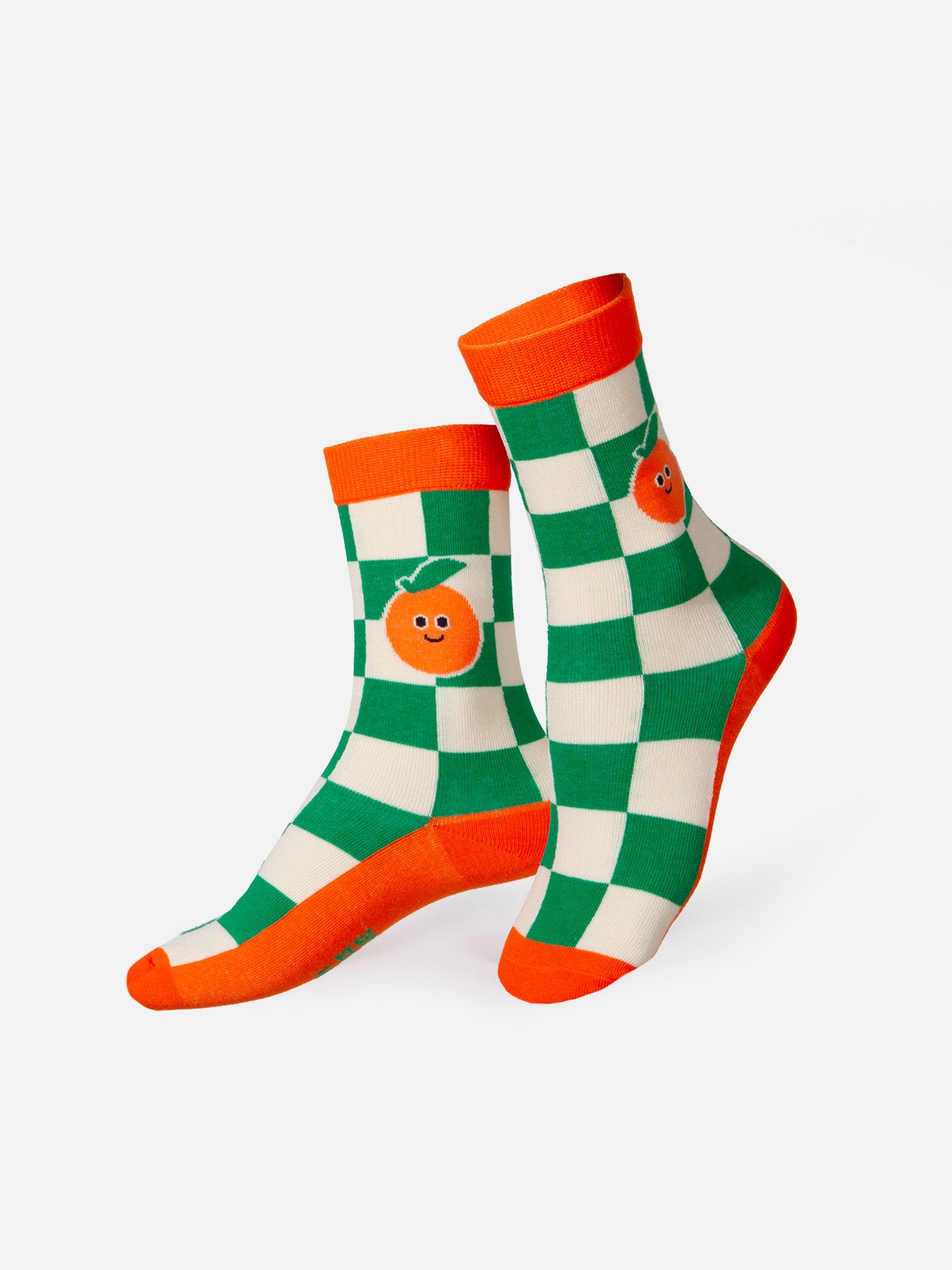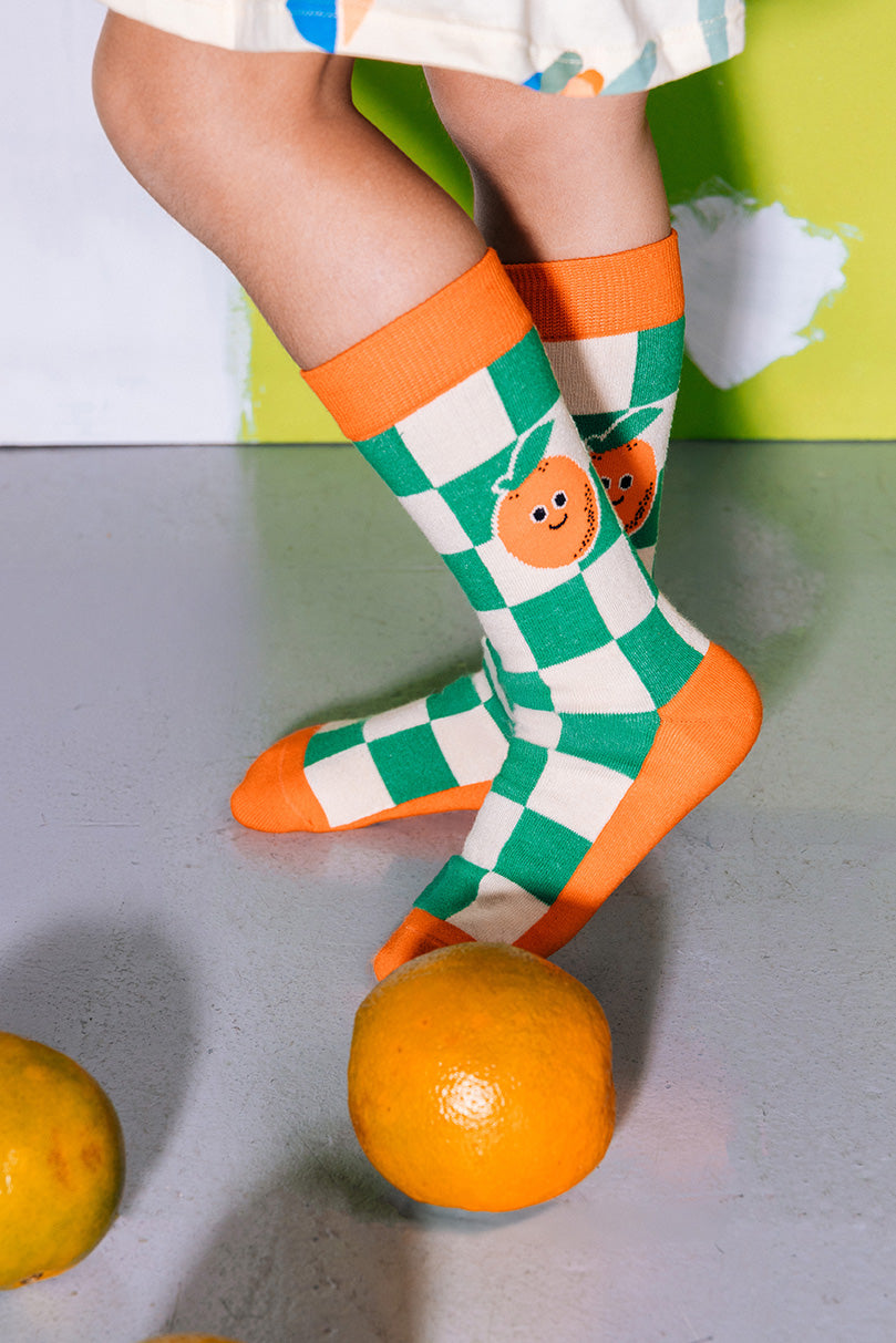 Nutritional and bright. These orange socks bring vitamin C-level cuteness to playtime. Unisex - Fits ages 5-10 years old- Size 28-35.