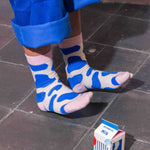 Keep it cool with Milk Socks in soft blue! Inspired by a classic carton, these charming socks are the perfect blend of playful design and cozy comfort for kids. Unisex - Fits ages 5-10 years old- Size 28-35.