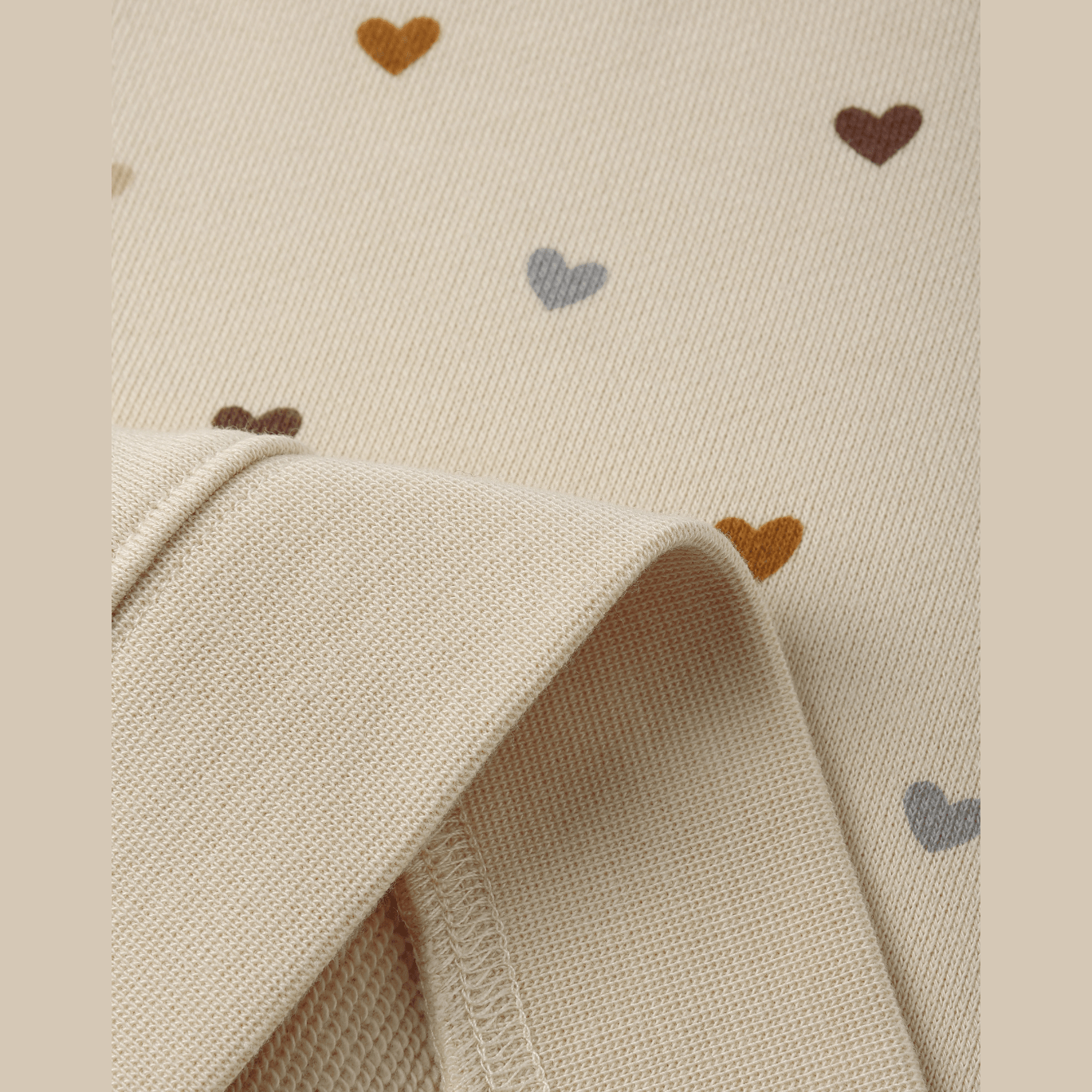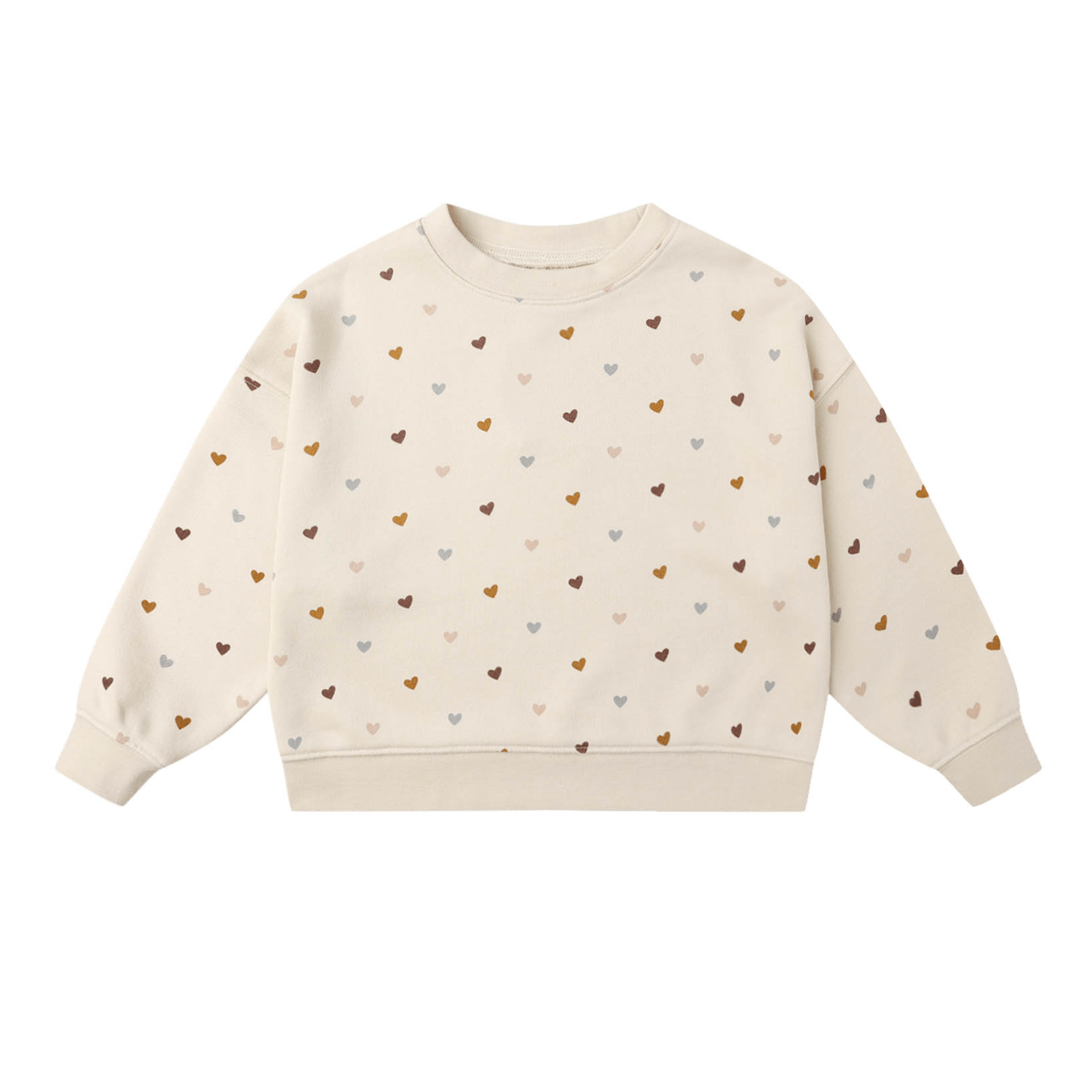 This Rylee & Cru Boxy Pullover Hearts Sweatshirt in Antique features a comfy blend of 60% cotton and 40% polyester, perfect for cozy days with a touch of heart-filled charm.