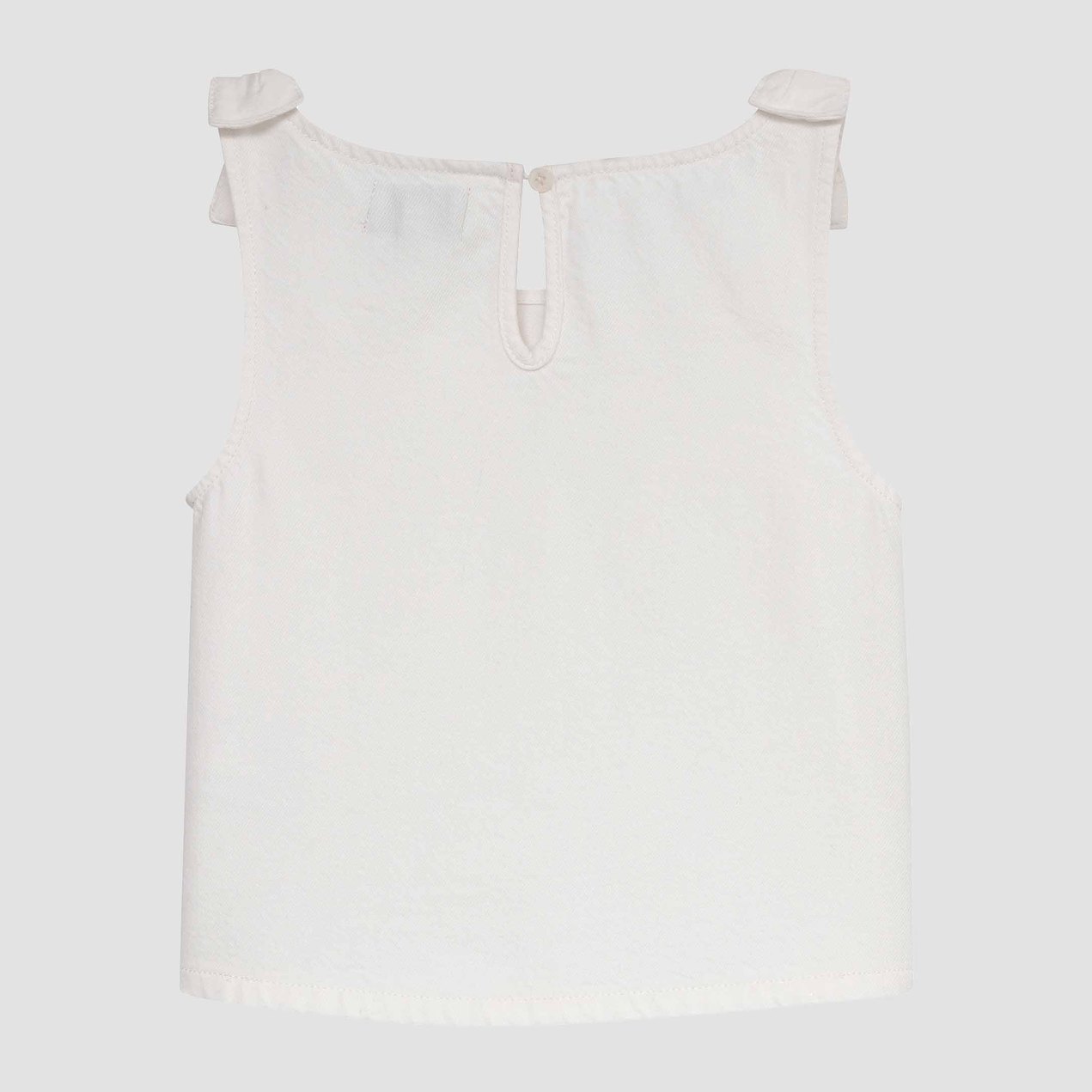 This breezy sleeveless essential keeps things cool and crisp with its clean white finish and thoughtful details. The center back neck closure and horn button add a touch of sophistication, while the soft cotton-TENCEL blend (69% cotton, 31% TENCEL™ Lyocell) feels gentle against skin. Tonal stitching and refined finishing make it perfect for layering or wearing solo when the weather warms up.