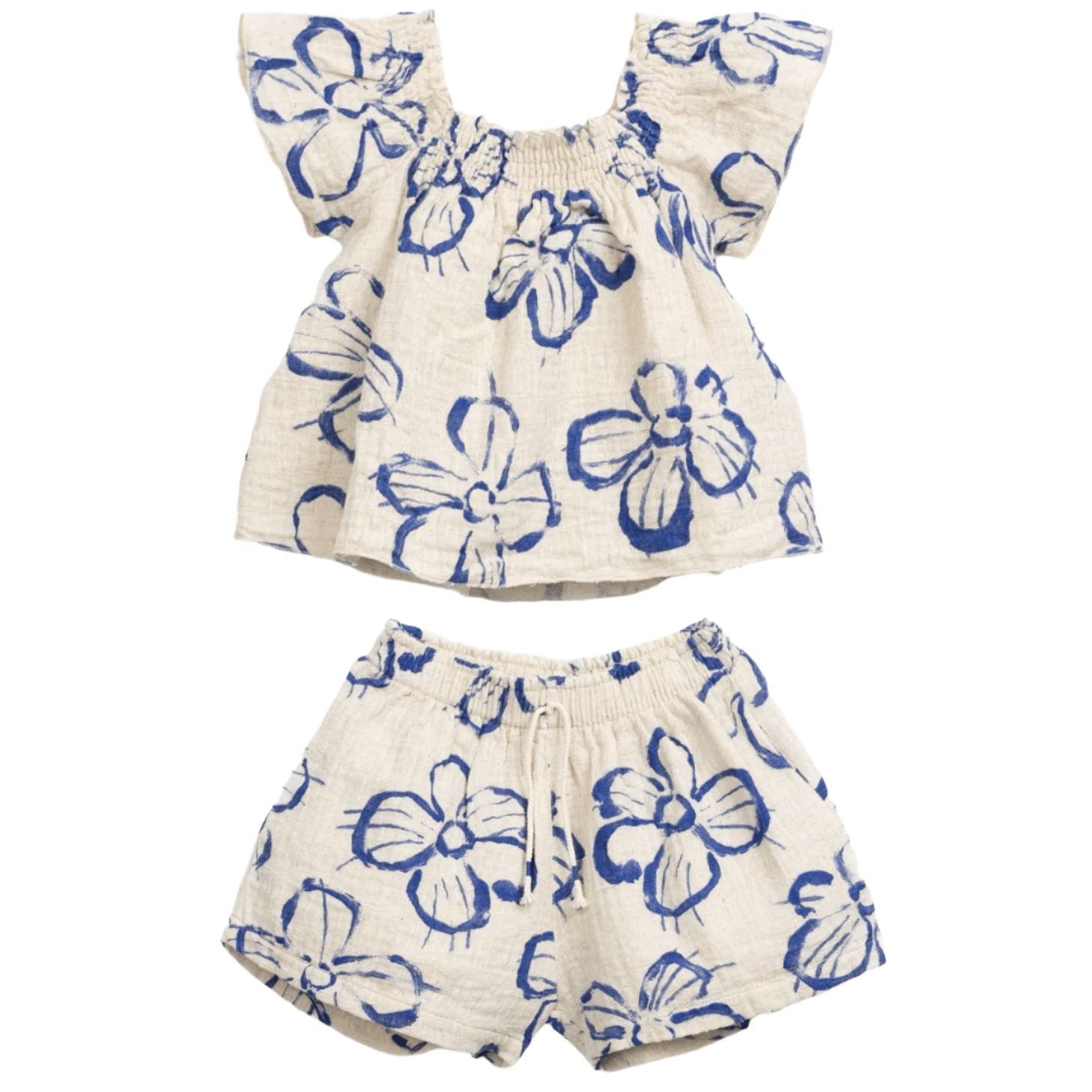 This breezy top is crafted from a blend of cotton and linen fabrics and boasts wide sleeves, a stretchy neckline, and charming coconut buttons. Pair it with our matching shorts, also made from a blend of cotton and linen, and featuring an adjustable waistband, coconut buttons, and a playful floral print.