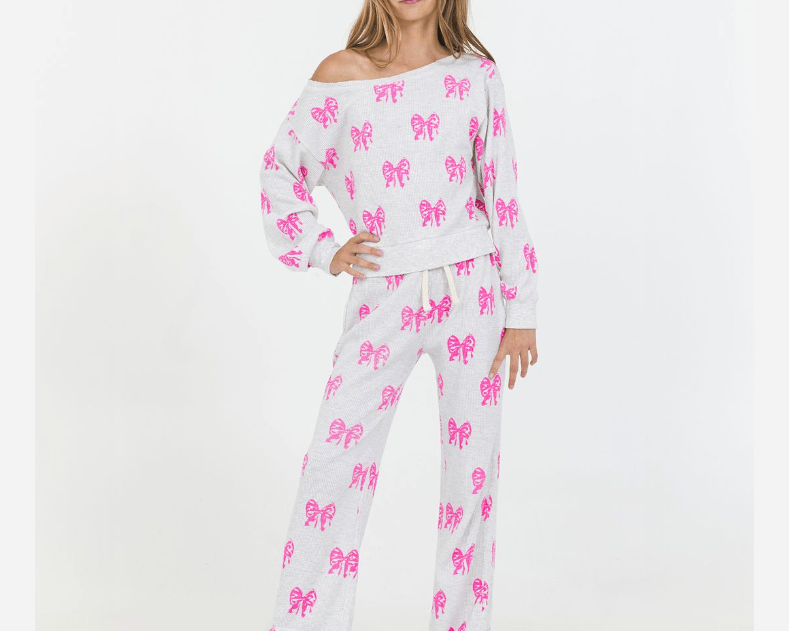 Vintage Havana All Over Bow Print Thermal Top and Pant