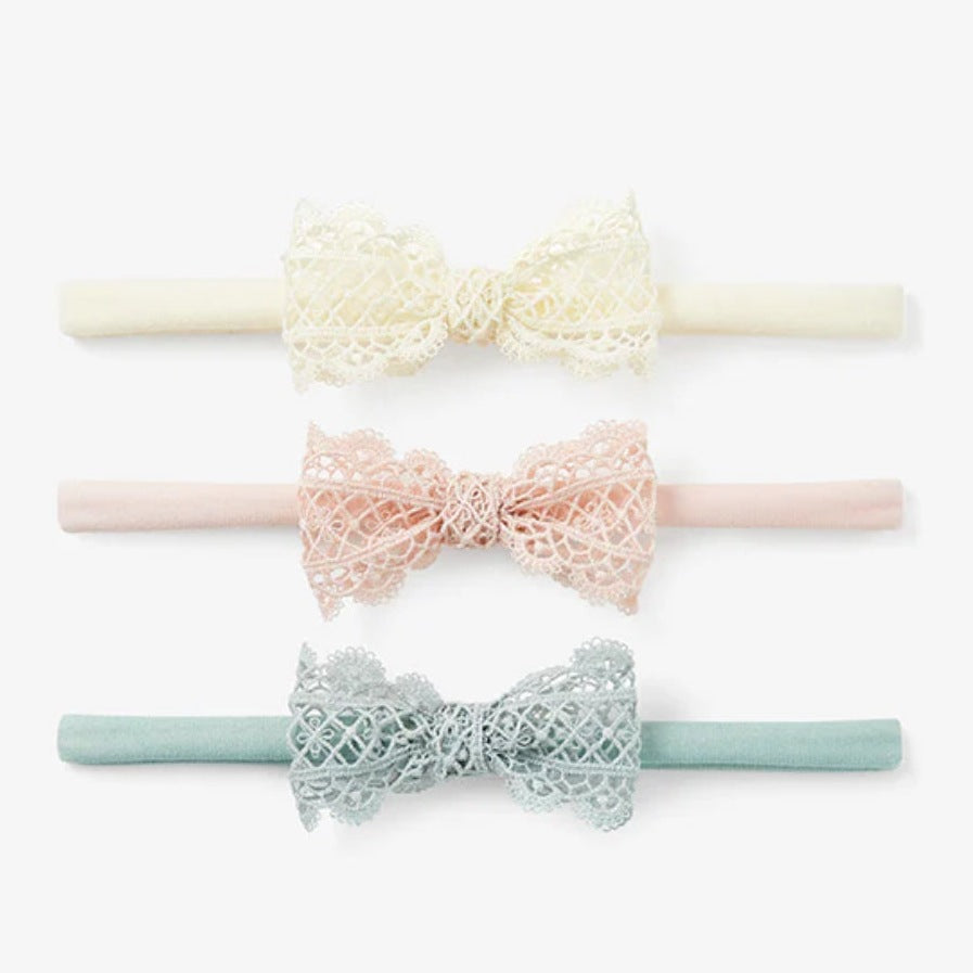 Elegant Baby Lacey Bow Nylon Baby Girl Headbands (3pk)