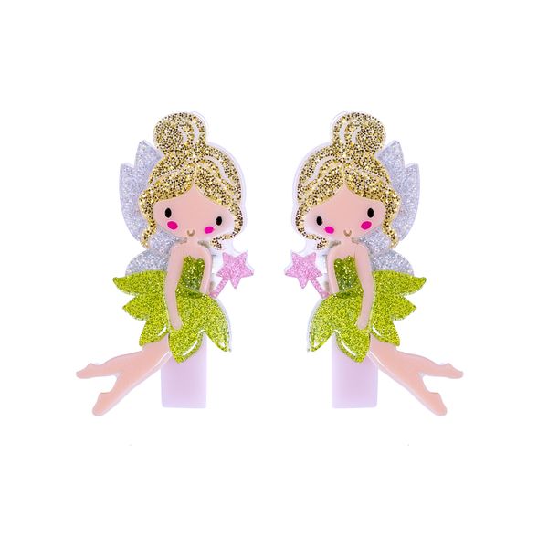 Our Fairy Green Glitter Dress Hair Clips feature a mystical rosy-cheeked fairy with glittery wings and a pink star wand! . Lightweight and comfortable, it's perfect for special occasions, celebrations, or everyday wear.