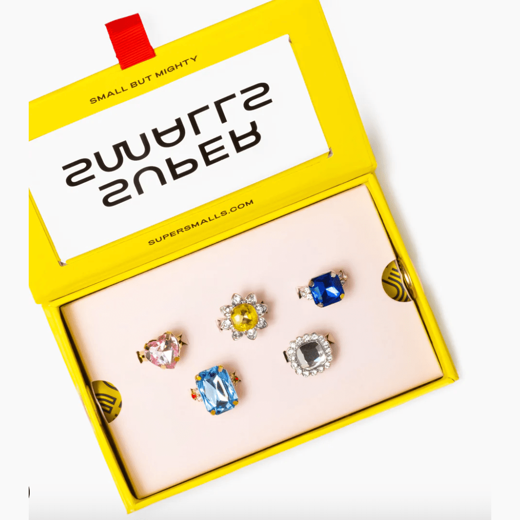 Grab your pals, we’re power-lunching! Swanky, stylish, and super sparkly, these rings are sure to make a statement when clinking your glass of apple juice. The set includes five rings featuring colorful and oversized gemstones—perfect for decking out both hands and creating your signature stack… or (if you must), sharing the sparkle with the table and matching with friends.