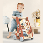 Description This wooden multi-activity walker with brake system allows the little one to gain confidence and balance when learning to walk. It comes with 9 activity toys including shape sorter, rotatable mirror, spinning gears and many more fun learning toys. Your toddler can store his favorite toys at the back of the walker. Encourages toddler's imaginative play. For their security, the rubber wheels are quiet and non-slip. Also has a break system to block wheels when toddler stands up but is not confident enough to walk on his own. This toy is crafted from sustainably sourced wood from FSC® certified forests. Presented in a beautiful gift box. Requires assembling. Specifications Color: multicolor Recommended Age: 12+ months Material: wood Size (inches): L: 18 x W: 12 x H: 19 Weight (lbs): 7,11 Care instructions: Clean only with a damp cloth. Do not use detergents.