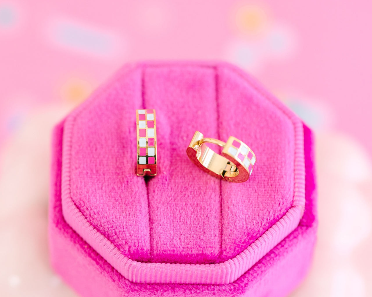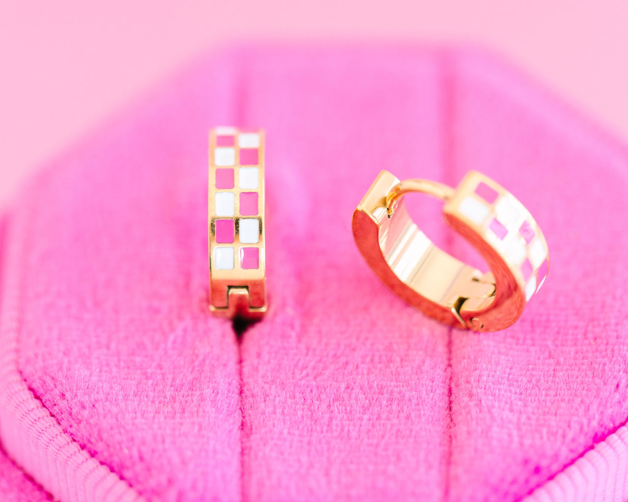 Pierced Hot Pink Checkered Huggies