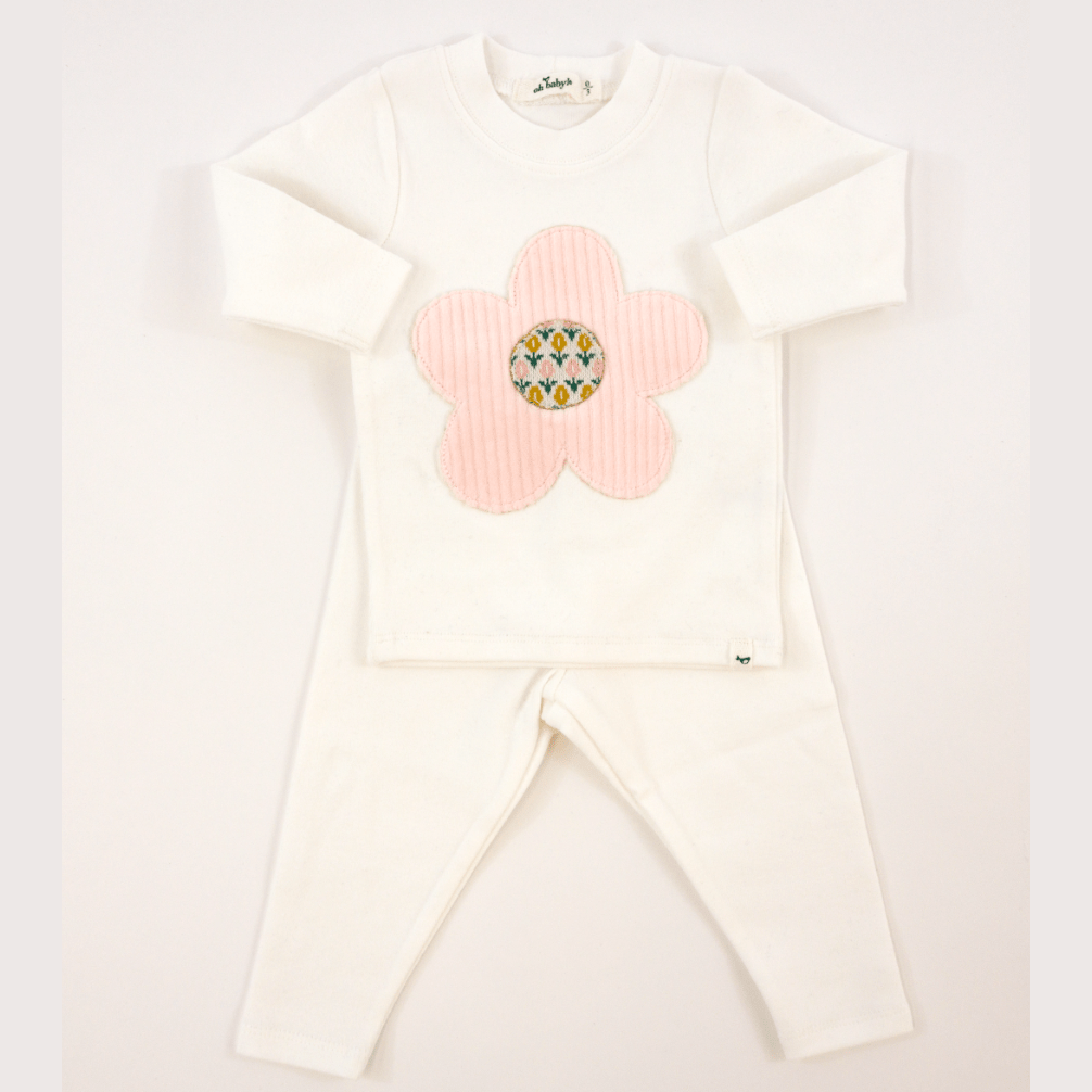 Oh Baby Quilted Flower Applique L/S 2pc Set - Cream