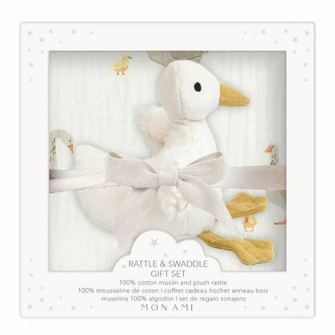 Mon Ami Mother Goose Swaddle & Rattle Gift Set