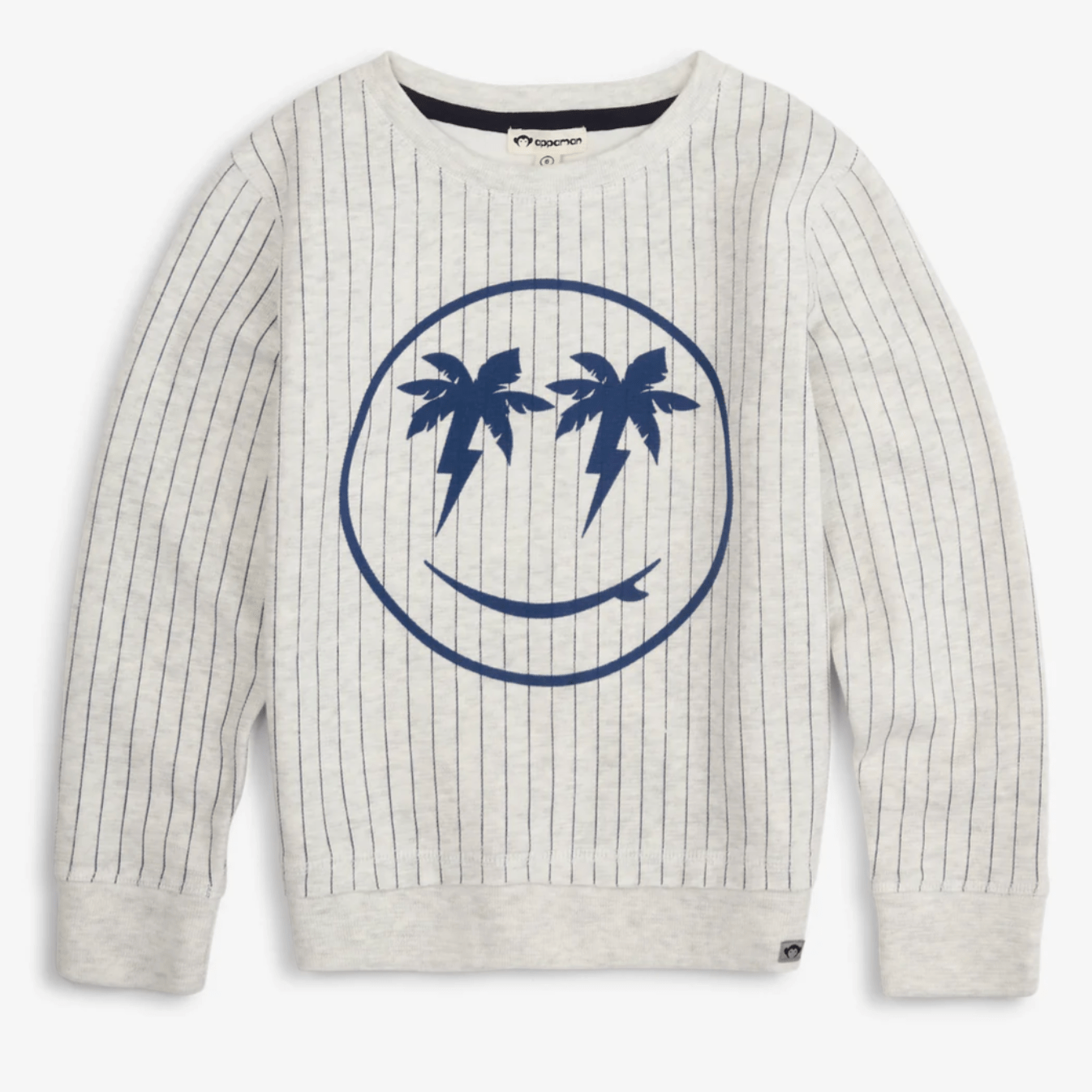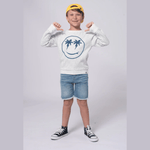 Brighten any day with our Appaman Highland Sweatshirt in Cloud Stripe! Made with soft and cozy fabric for maximum comfort, this playful sweatshirt features a quirky design of palm trees and surfboards. Perfect for layering on breezy days, it's the ultimate stylish addition to any adventure. Ready to hit the beach?