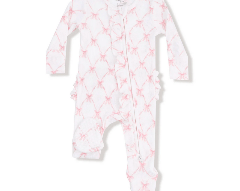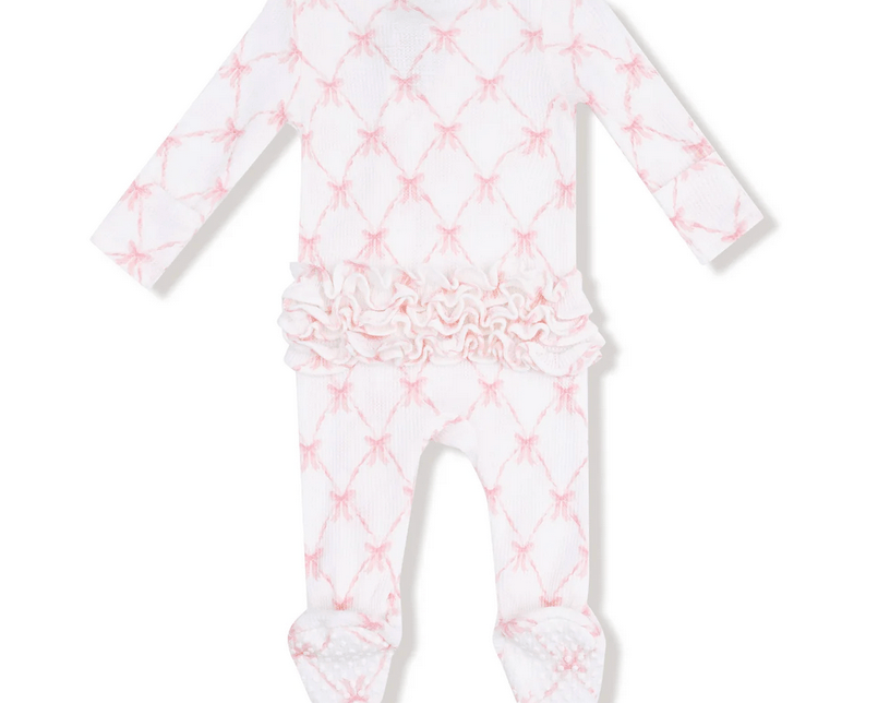 Angel Dear 2 Way Ruffle Zipper Footie (Ribbon Bow Trellis)