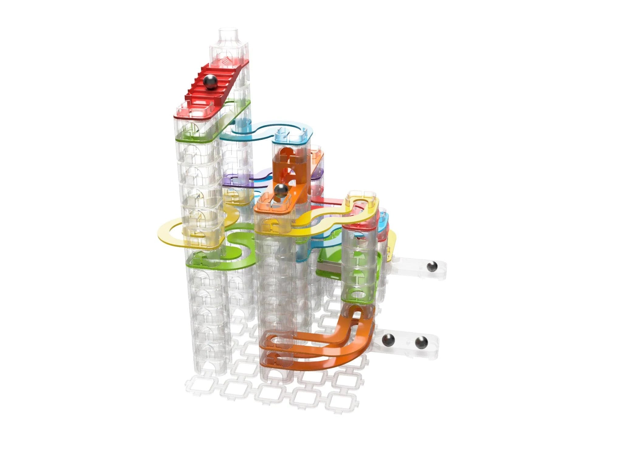 Experience the magic of marbles rolling on invisible slopes with the Fat Brain Trestle Tracks Builder Set! This 73-piece set includes stacking cubes, flat tracks, and stainless steel marbles that glide smoothly along widening paths. Build guided designs or create your own exciting marble runs. It’s a fun way to boost creativity, problem-solving, and engineering skills. Durable and compatible with other sets, it’s perfect for endless play and discovery! Ages 8+