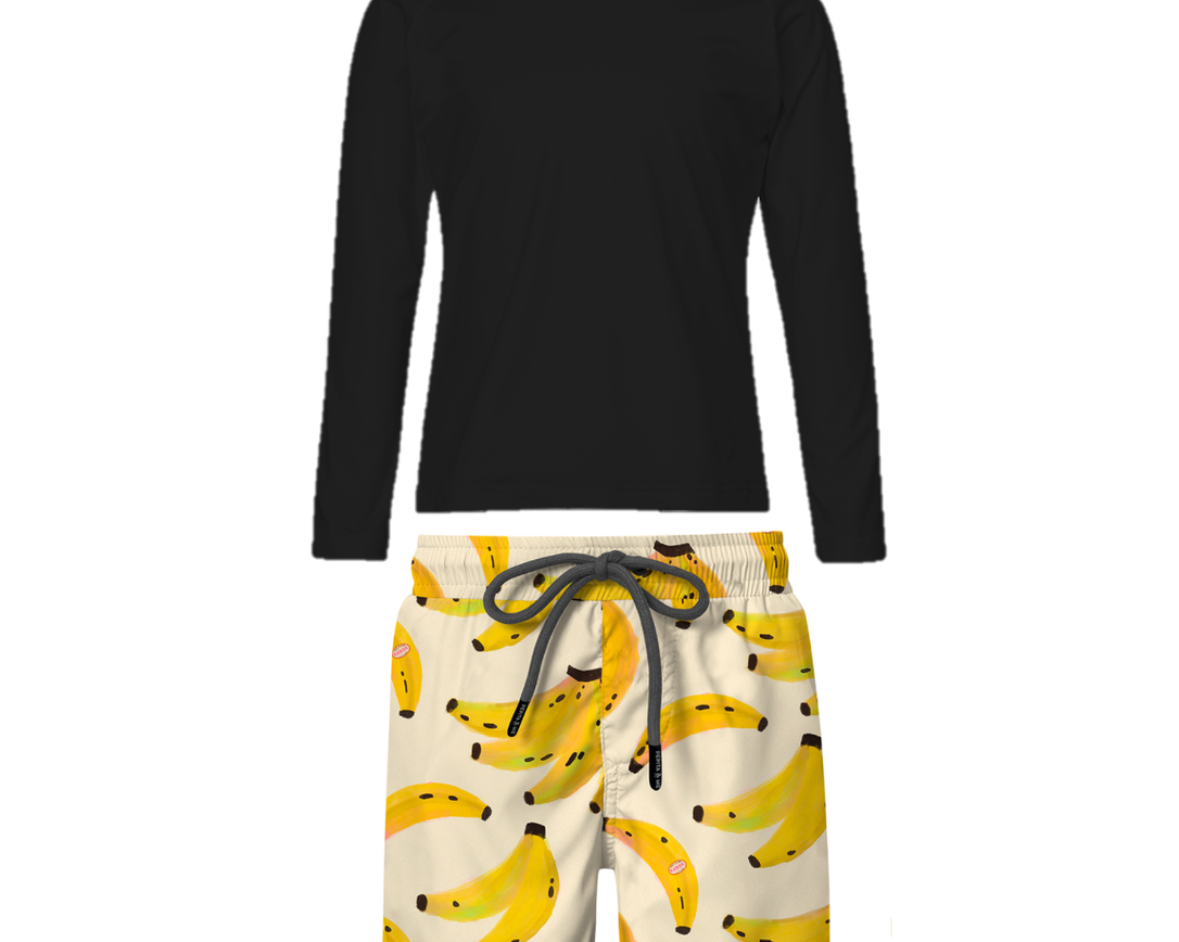 Pepita & Me Black Rashguard & Yellow Banana Swim Shorts