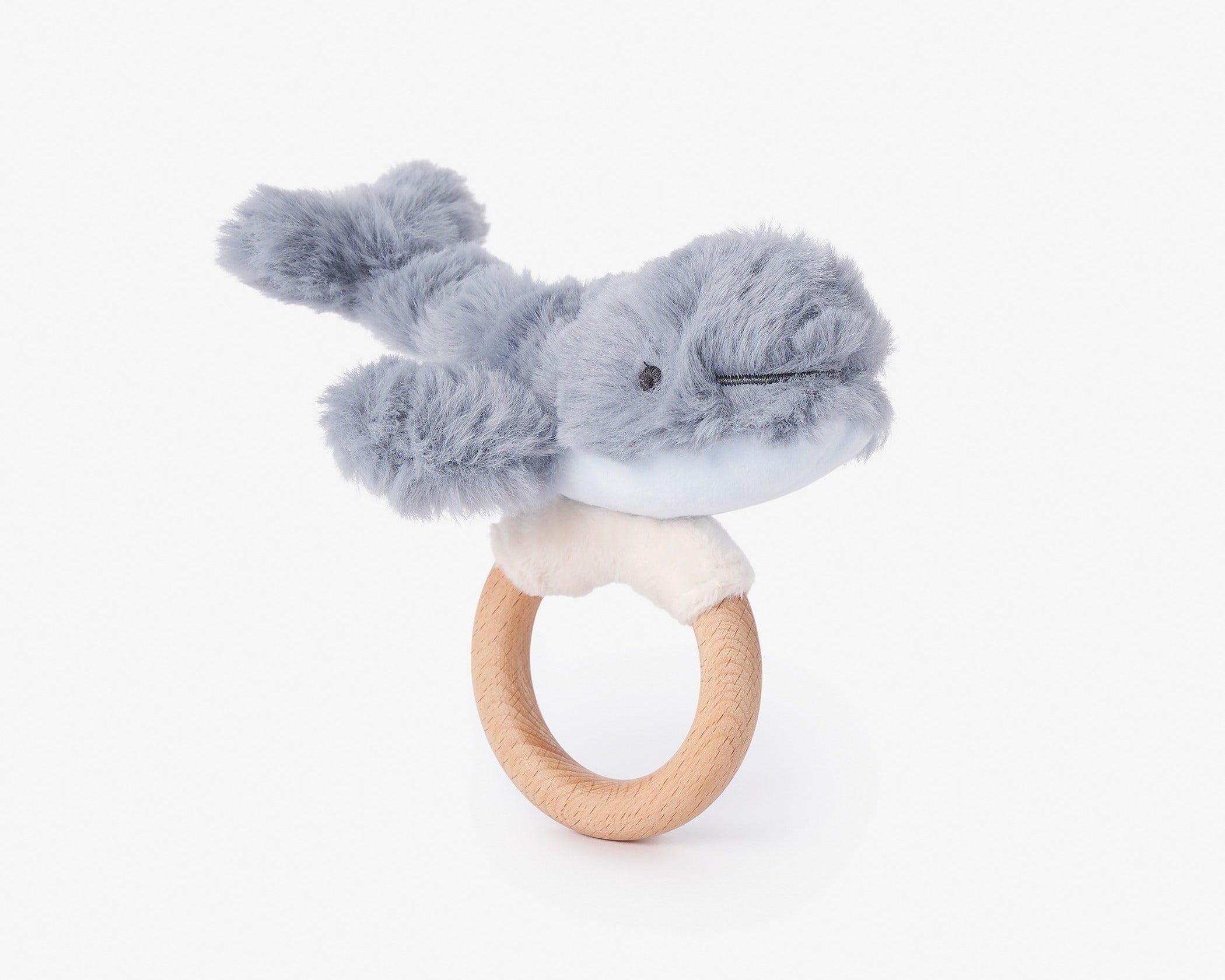 Elegant Baby Whale Plush Wooden Ring Rattle
