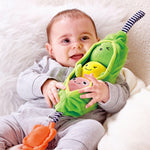 A perfect addition to play time, this sweet pea pod from Hape features three round peas that tuck right inside their pod. Each one has a funny face and textured tags for sensory fun. On the end of the pod is a flower that rattles to delight little ones.
