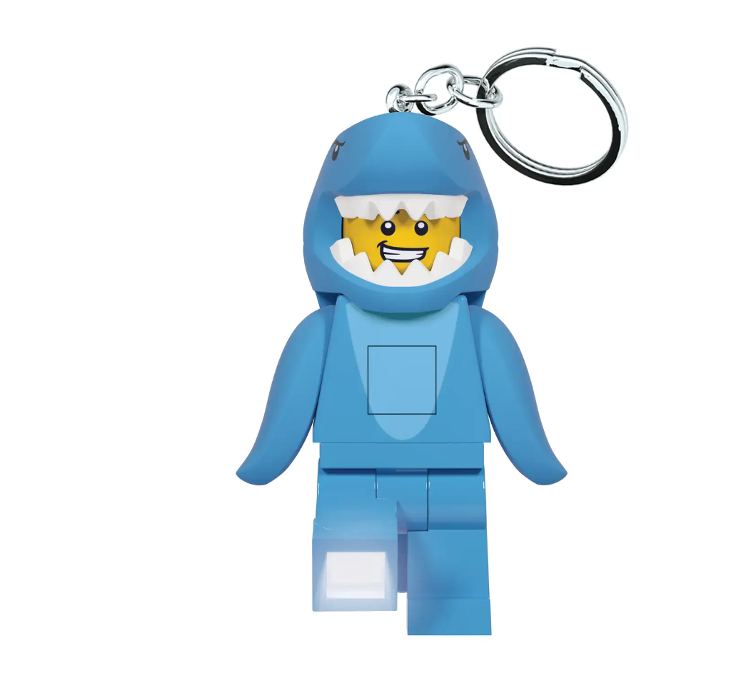 - Shark Suit Guy Key Light – Features a large, posable Shark Suit Guy LEGO® minifigure key fob with 2 bright LED lights in the feet, attached to a durable key ring and chain. Batteries included