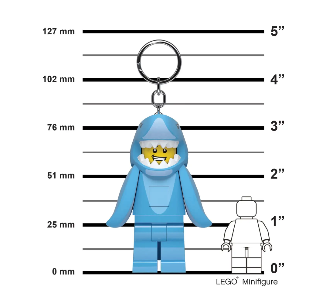 - Gift idea for ages 6 and up – The large Shark Suit Guy LEGO® minifigure stands over 2.5 in. (7 cm) tall. This key light makes a fun birthday present, holiday gift or surprise treat for young LEGO fans