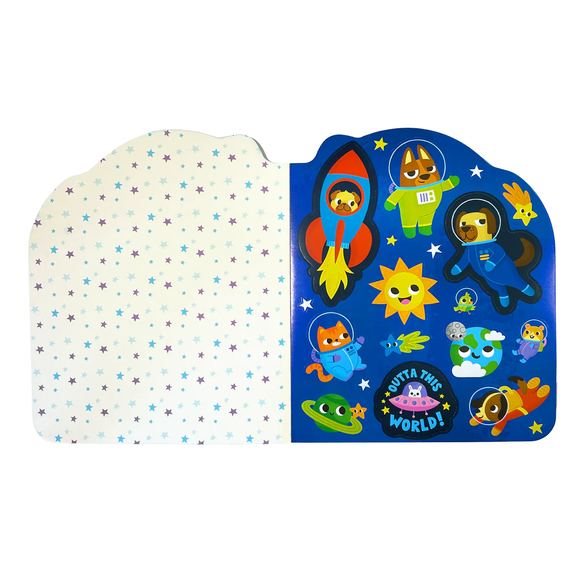 - Pets in space-themed activity book for kids