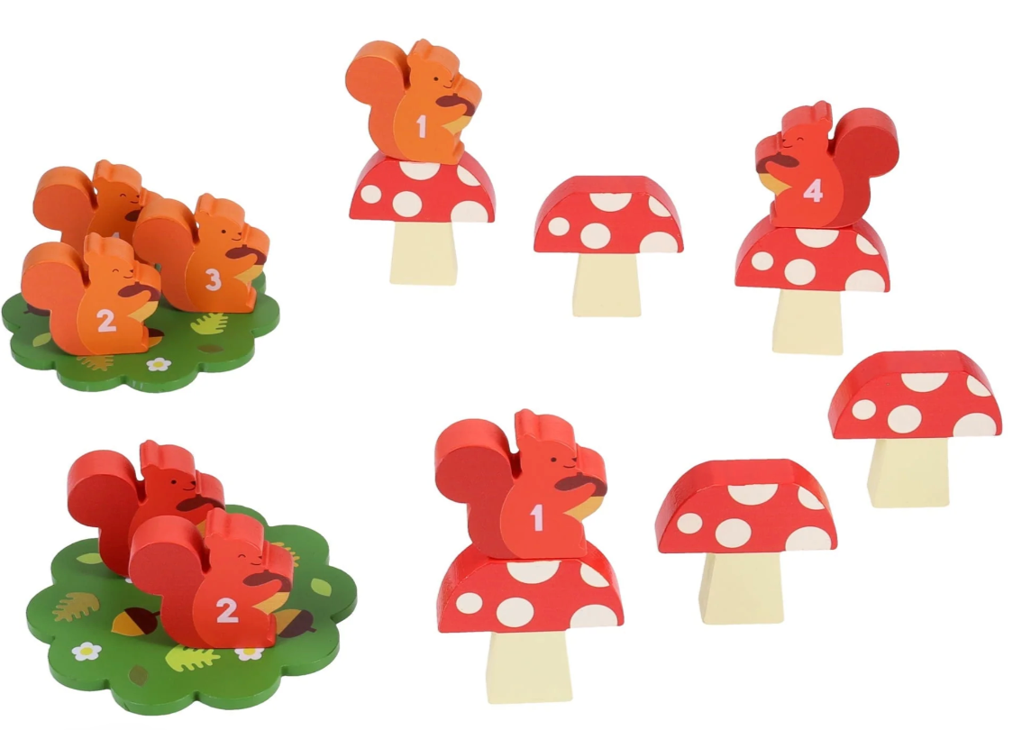 THOUGHTFULLY DESIGNED – Inside the box, which is made using 75% recycled materials, you’ll find 8 wooden squirrel counters, 6 wooden mushroom stands, 2 wooden nesting tree bases, and English, Dutch, French, German, Italian, and Spanish instructions, all made using FSC-certified materials.