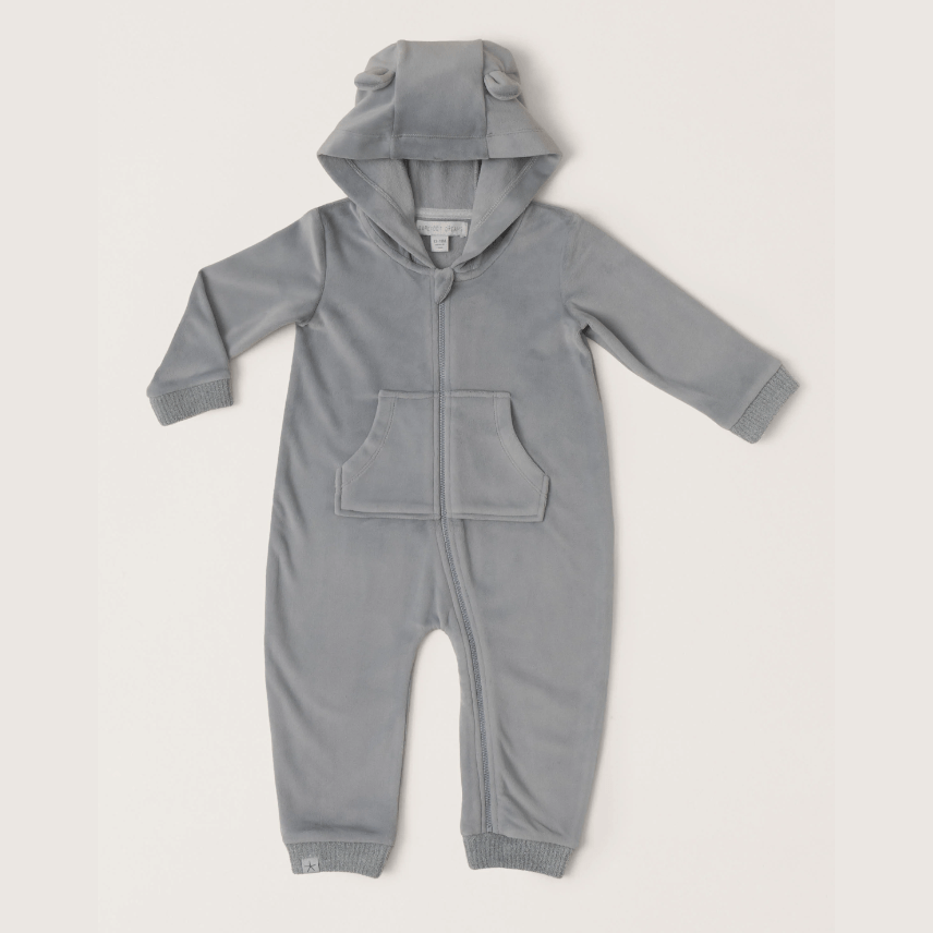 Unleash your little one's inner cuteness with the LuxeChic® Baby Bear Onesie. Made from ultra-soft and stretchy LuxeChic fabric, this onesie feels like a plush velvet for ultimate comfort. The cozy hood with bear ears, full zip front, kangaroo pocket, and sweater rib cuffs make for a stylish and functional piece.