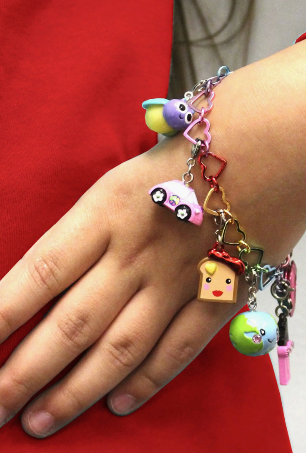 This vibrant bracelet features a chain of colorful heart links in double rainbow hues, designed to showcase your favorite clip-on charms. The 7-inch bracelet with secure lobster clasp is crafted from acrylic and base metal, perfect for building your charm collection. Ideal for kids ages 3 and up. By CHARM IT!