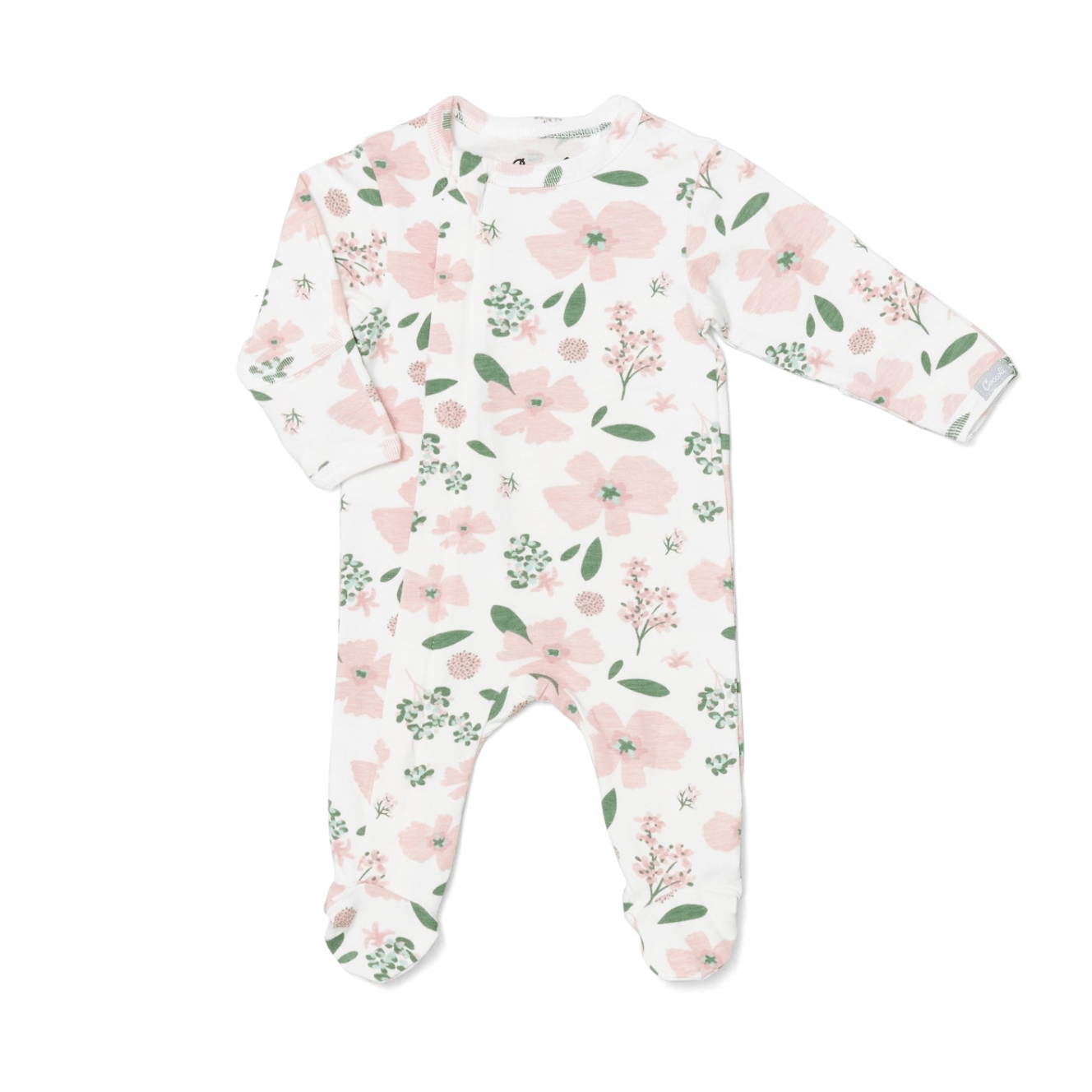 Coccoli Cotton Modal Zipper Footie (Floral on Cream)