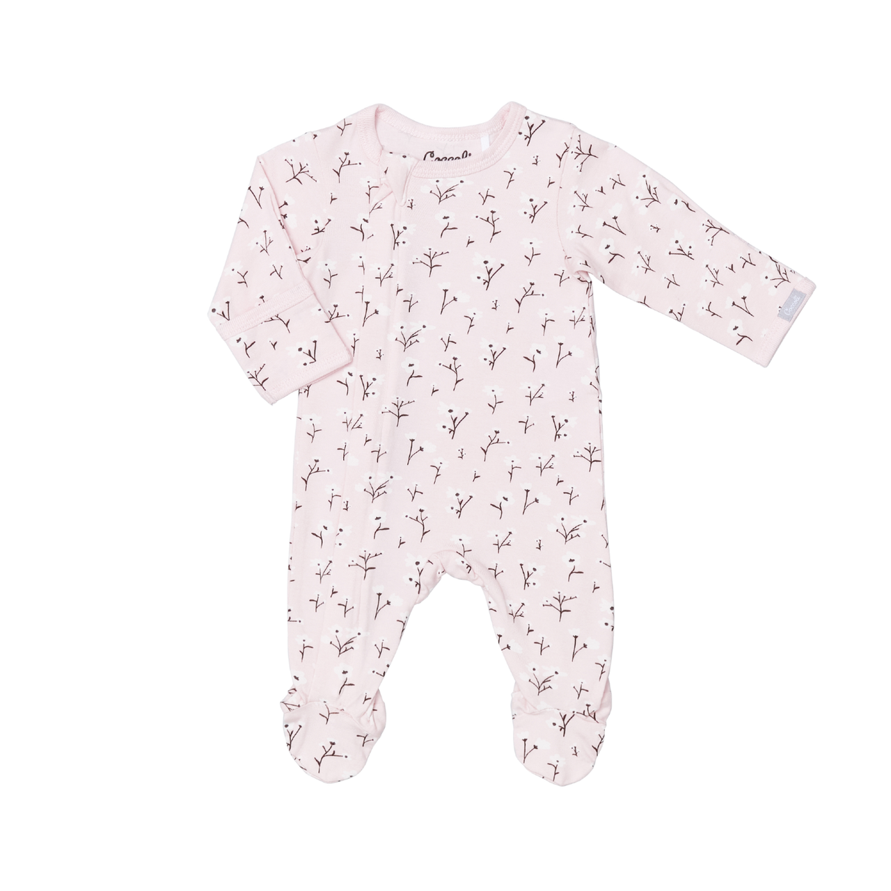 Coccoli Cotton Modal Zipper Footie (Floral On Mauve Morn)