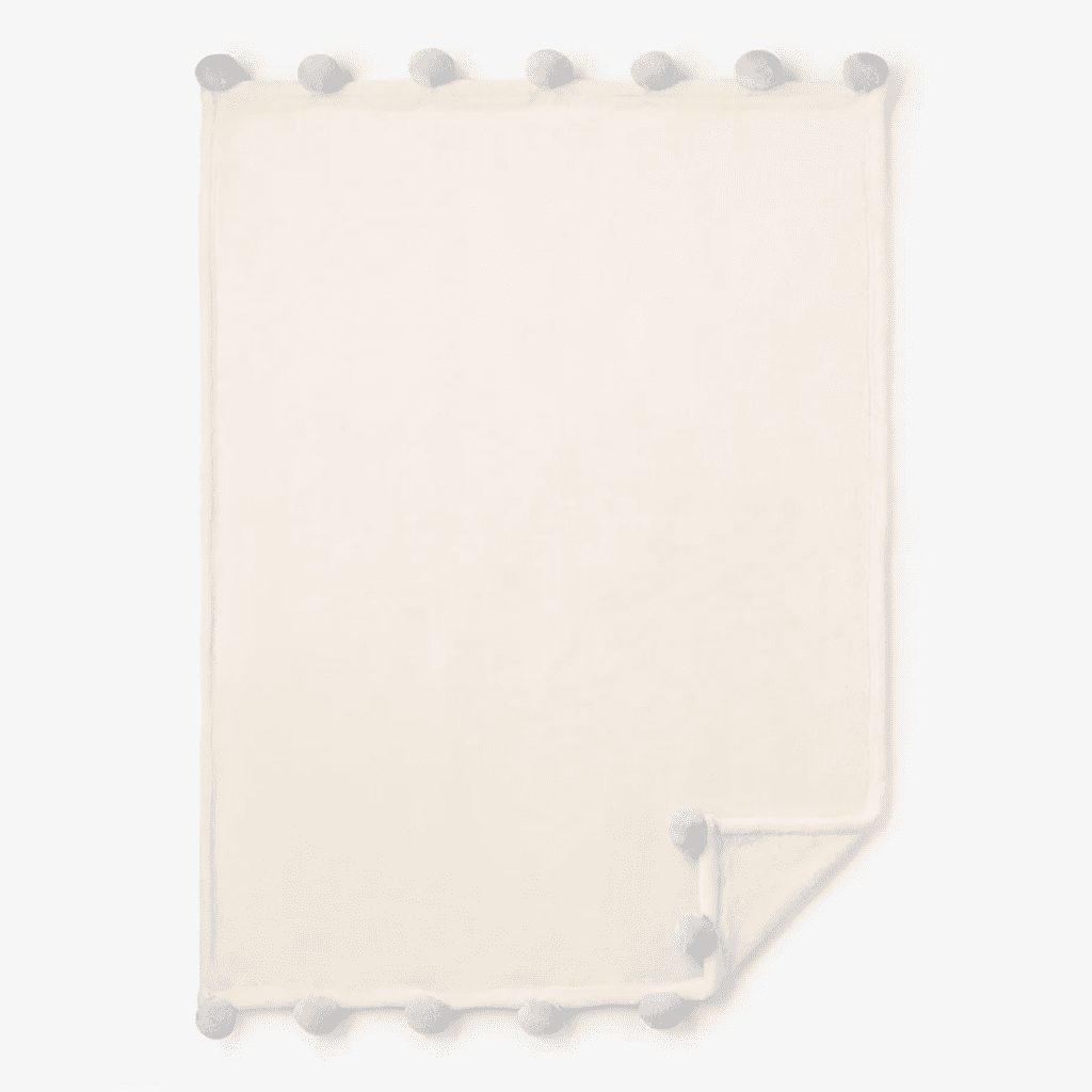 Our Pom Trim Fleece Baby Stroller Blanket is as warm and snuggly as it is durable, sure to become baby's favorite blanket. Lovingly made with mid-weight 100% soft polyester fleece, our cream-colored stroller baby blanket has adorable pom poms lining its end edges and is delivered folded and tied with a ribbon for easy gifting. It's machine washable and durable, yet will stay soft for years to come.
